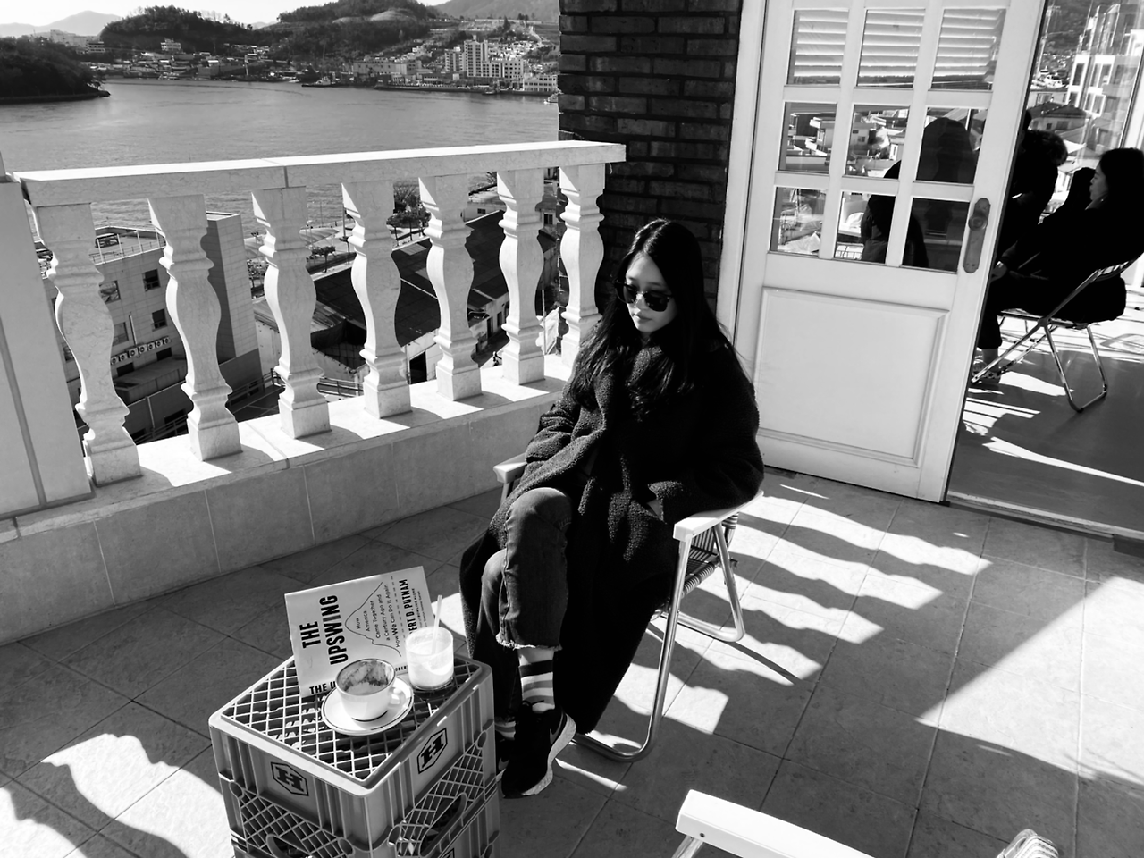 그렇게, 여수에서의, 육지에서의 마지막 노을을 바라보았다. 여수에서 가장 젊은 관광객이 찾는 중앙동 벽화거리는 오션뷰를 차지하기 위한 카페들의 경쟁으로 더 더 높은 곳으로 카페가 올라가고 있었다. 마치 바벨탑 같구만. 우린 아침에 화끈하게 운동을 해뒀기 때문에 꼭대기 카페까지 걸어올라갔다가, 다시 걸어내려와 점심을 먹고는 다시 꼭대기의 다른 카페까지 걸어올라가서 하루를 보냈다. 꼭대기의 한 카페의 여사장님은 20년 경력의 한국화 작가시다. 훤칠한 인테리어의 카페에 어울리지 않게도 곳곳에 한국화가 배치되어 있었다.