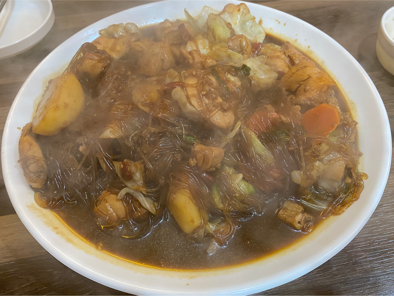 양이 무지막지 하게 많았다. 살짝 설익어서 심이 살아있는 감자의 아삭함 하며 미리 불려놓고 오래 삶진 않은 당근의 탱글함까지 살아있는 찜닭이, 안동 원조의 여유라는양.