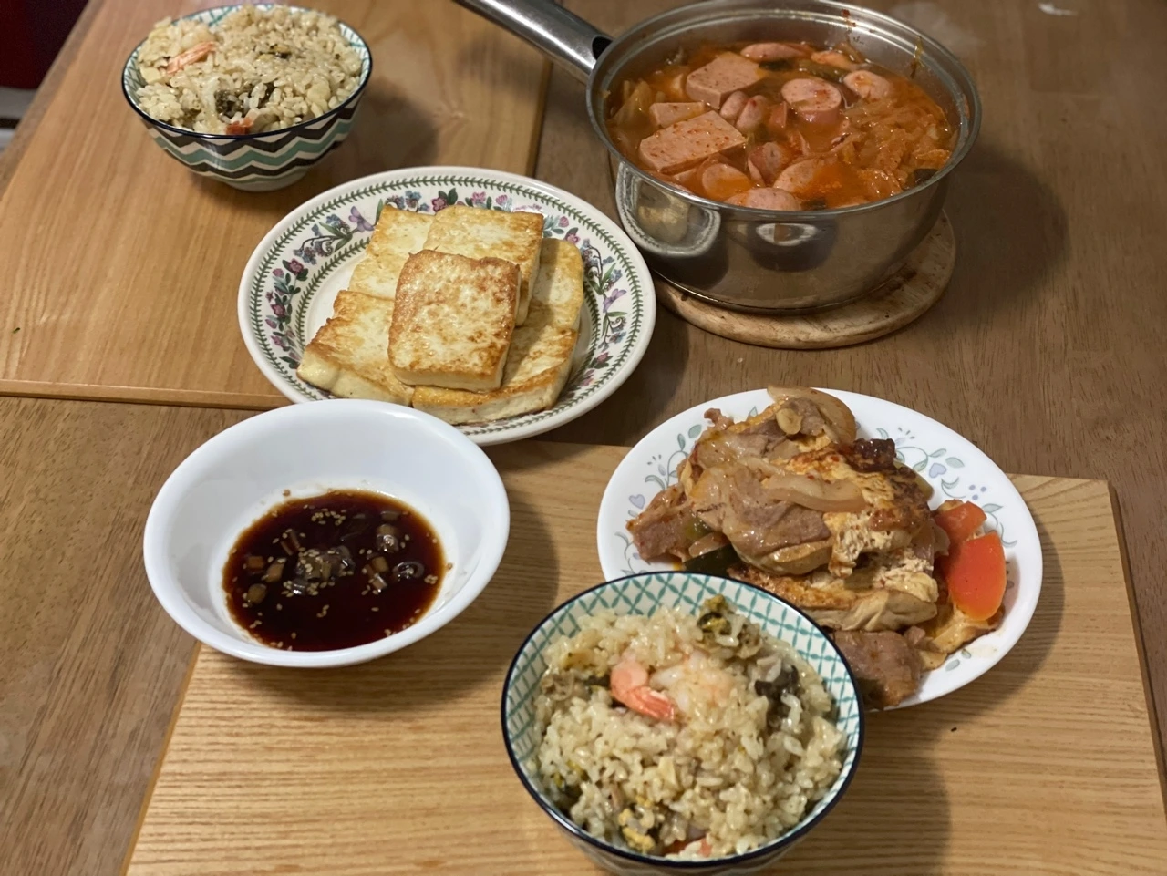 그러나 나는 의지의 한국인이므로 씻은 쌀을 솥에 붓고 새우고 그 위에 차곡차곡 올렸다. 그리고 다시 두부조림을 손보고, 찌개를 간을 하고, 상을 차리며 바쁘게 마무리를 한다. 그 사이에 학교홍보로 외부 업체에 문의한 일이 진척이 되어 연락이 왔다. 이런. 우린 지금 퇴근을 해 있지만 업체엔 빨리 답변을 해야 한다. 부장님에게 문의를 해가며 그 일까지 처리를 한다. 겨우겨우. 겨~우 겨우 그래도 다행히 끝마쳤다. 그러고 나니 오늘도 어김없이 한시간 가까이 요리를 한 셈이구나.