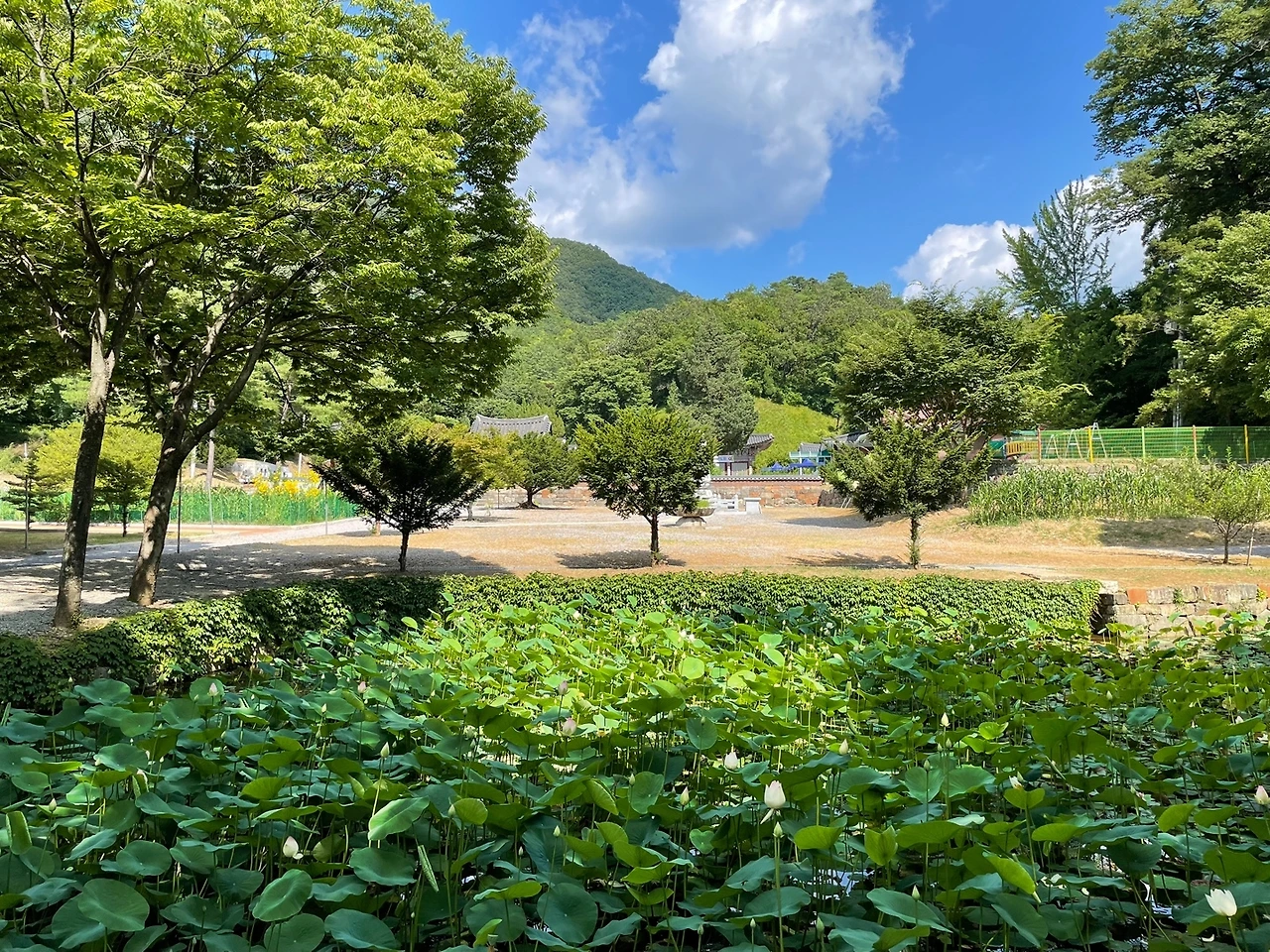 세심다원은 보덕사 중문 오른편에 자리하고 있고, 진입로를 끼고 주차자을 마주하고 있어 접근성이 좋다. 호수에 연꽃이 가득한데, 8월에 만발할 풍경을 상상하니 더 없이 좋았다. 꽃봉오리가 올라온 연꽃이 몇개 있어서 사진을 찍을 수 있었다. 땀을 뻘뻘 흘리며 다원 안으로 들어가서 에어컨을 겨우 쐬면서도, 꿋꿋하게 뜨거운 연잎차를 시켰다. 마음이 씻겨질까? 잘은 모르겠다. 나는 그 자리에서 온도감각에 대한 글을 마쳤다.