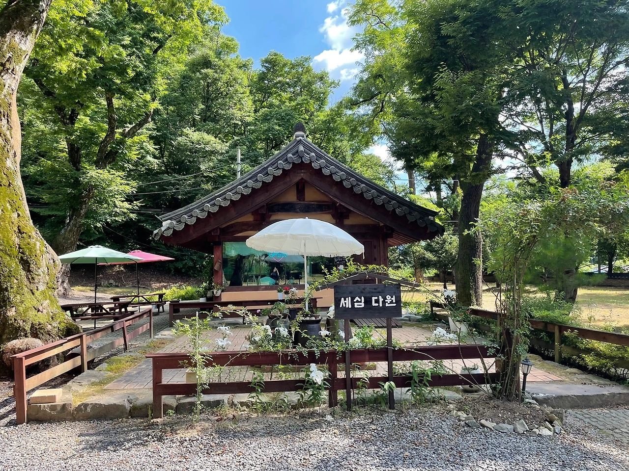 도자기 공방 수업 뒤에 찾은 곳은 단종의 장릉 바로 옆에 있는 보덕사의 "세심다원"이었다. 장릉도 청령포와 함께 영월의 필수코스라, 보리밥도 먹을겸 언제고 찾아오기로 했다. 그러나 오늘은 숙소에 조금 일찍 들어가보기로 한 참이라, 다원만 우선 들르기로.