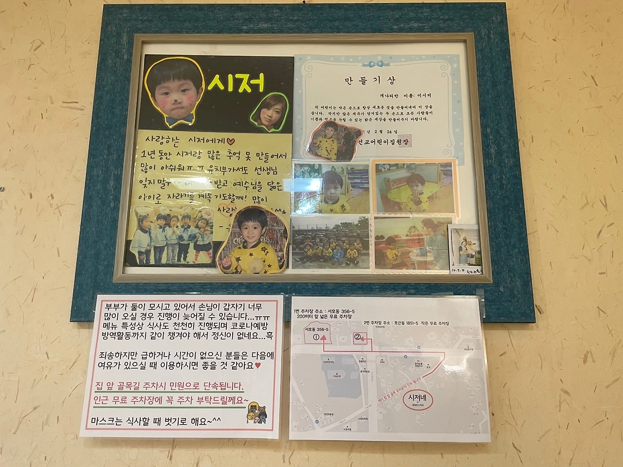 헐. 세-상에나. 아이 이름이 시저라니 간지 폭풍이다. 벽에는 아이 이름이 또렷이 박힌 상장도 있다. 이 시저.