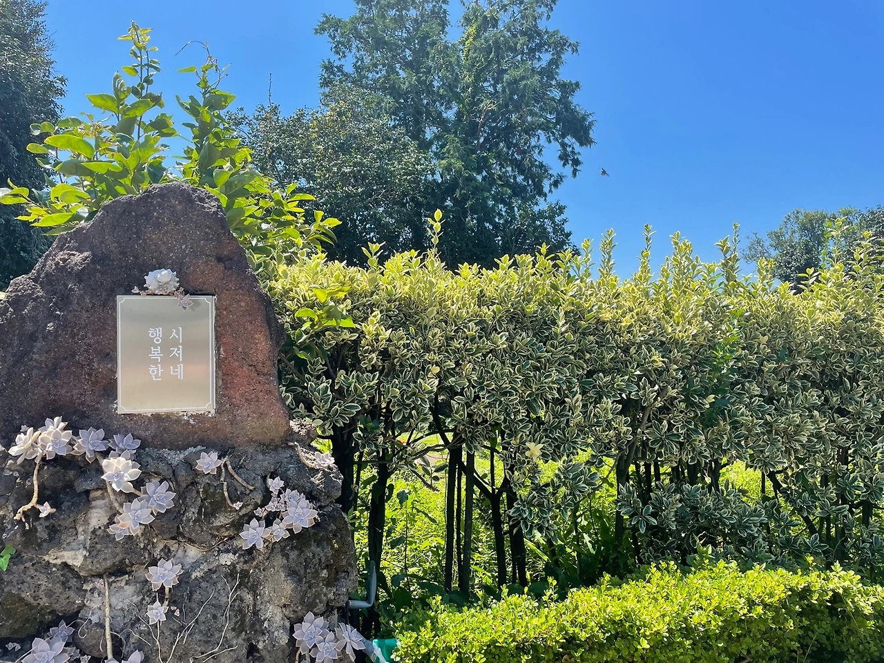서귀포는 제주시내보다 붐비지 않아서 정말 좋다. 중문방향으로 시원하게 차를 달려 주택가로 들어나니 아담하고 아름다운 정원까지 갖춘 식당이 있다. 조금 멀리 주차를 해야 한다는 문제가 있긴 하지만, 동네의 특성을 생각하면 이해가 된다. 공영주차장에 주차를 하고 오니 바깥양반이 웃으며 말한다.