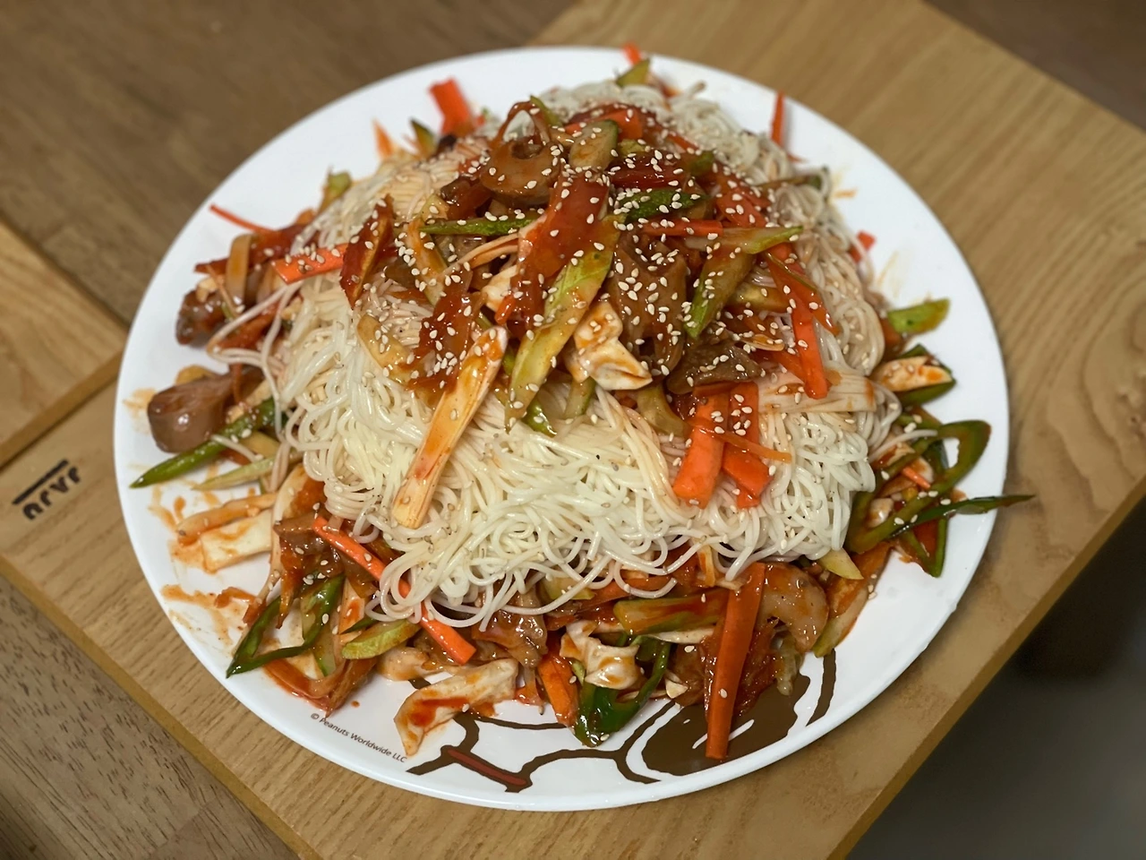 나는 잘 버무려진 무침을 아래에 넉넉히 깔고, 그 위에 소면도 넉넉히 깔고, 마치막으로 다시 소스와 함께 재료를 부었다. 접시가 작아 모양이 조금 애석하긴 하다. 그러나 이렇게 하면 소면에 소스가 두루 입혀질 수 있다. 접시 위에서 비비지 않고도 어렵지 않게 맛을 볼 수 있는데,