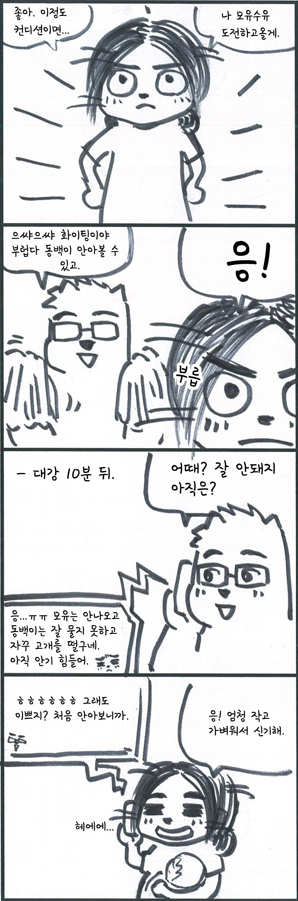 그래도 처음으로 동백이를 안아본 그날, 바깥양반은 드디어 어머니가 되셨다는 사실. 그런데 이날 동백이는 처음보는 엄마에게 배냇웃음을 마음껏 보여주는 효녀였지요.
