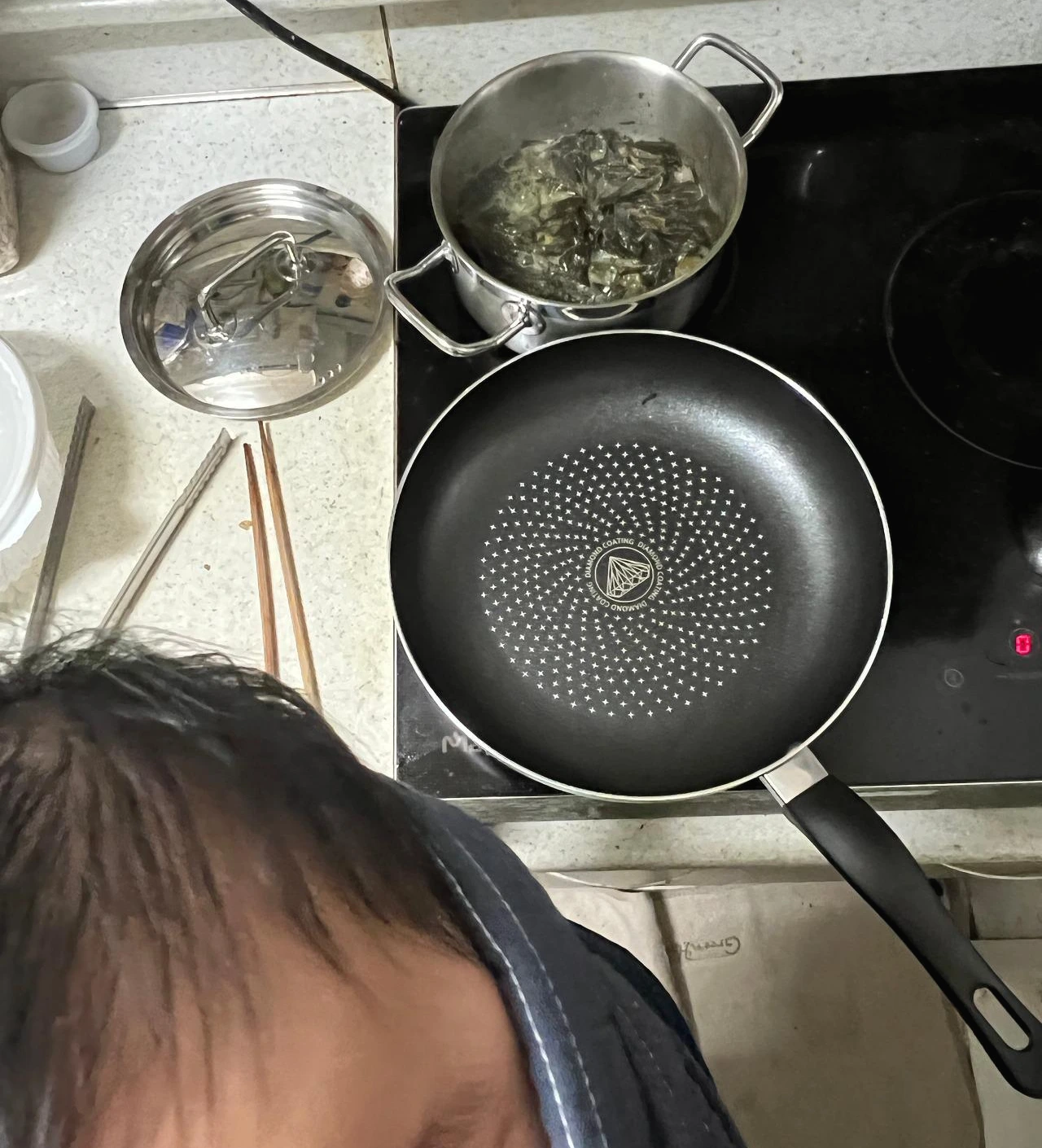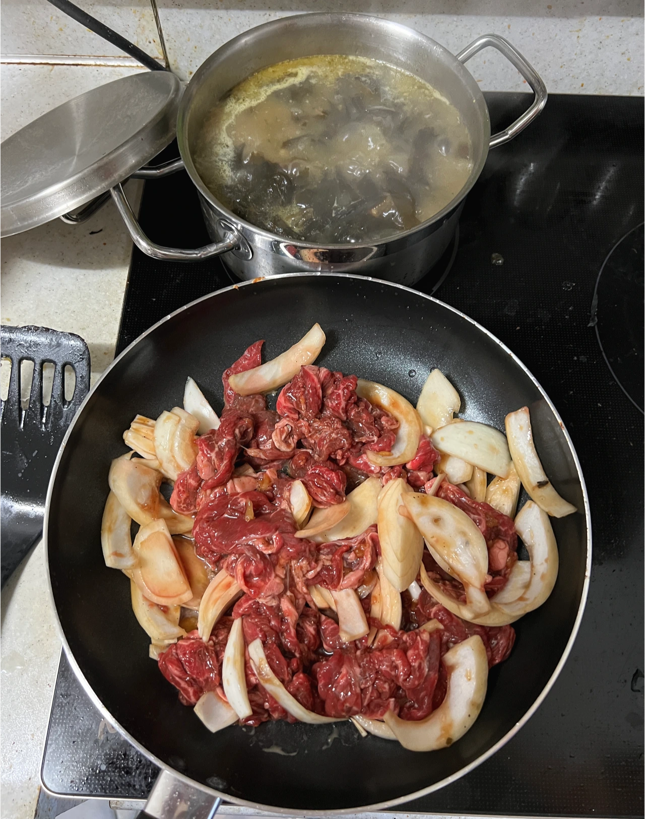 - 쌀뜨물이예요 스컬리. 마트에 가기전 밥을 새로 지으면서 쌀뜨물을 아주 진한 녀석으로 조금 넣었어요. 평소엔 잘 안하던 방법인데, 새로 미역국과 밥을 동시에 올린 김이니 가능했죠.