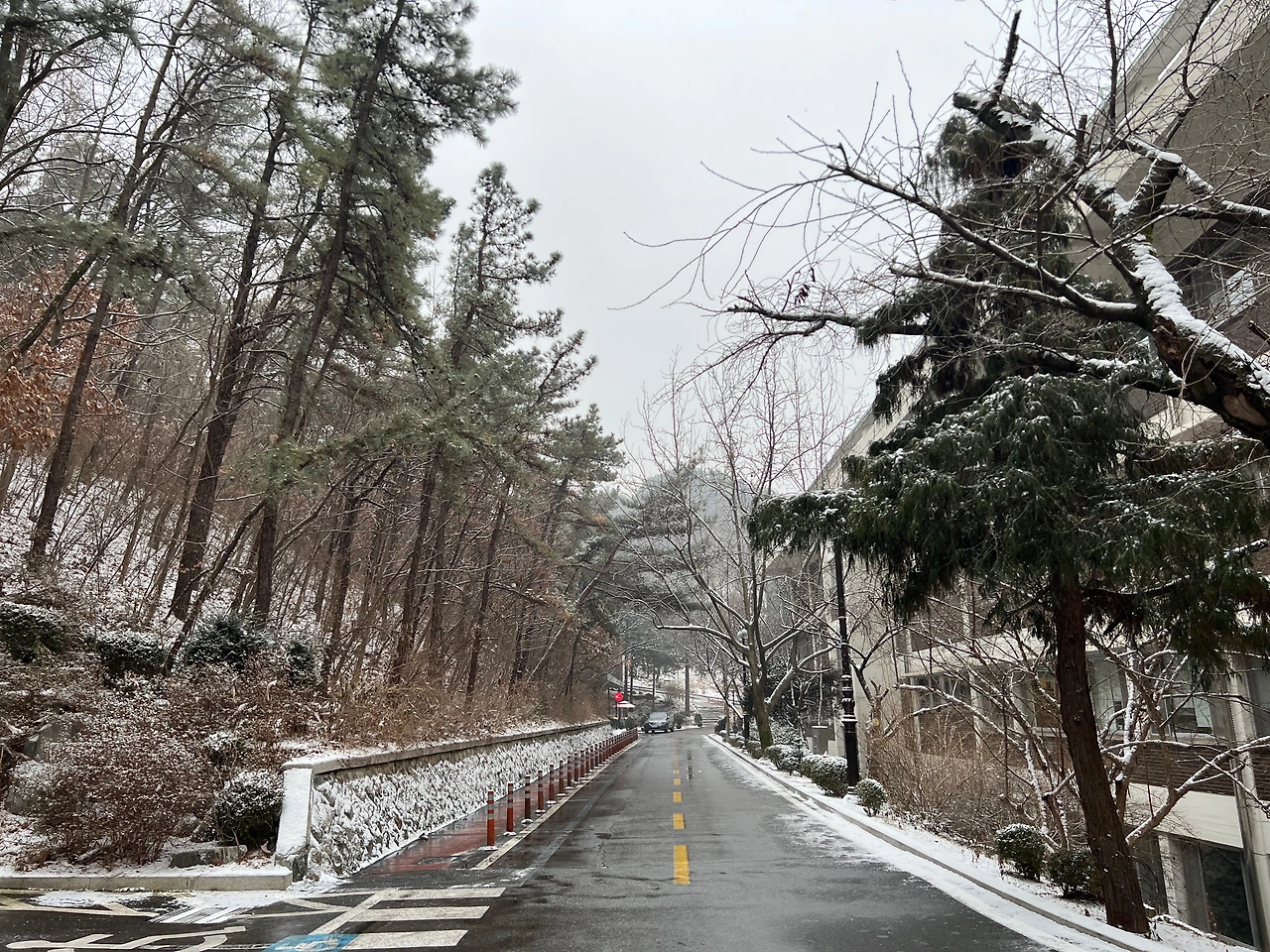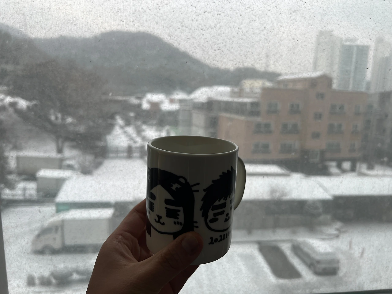 해서 업무가 끝난 뒤 집에 가서 콩을 볶았다. 넉넉히 300g 정도. 이거면 속초 남은 일정동안 콩이 부족할 일은 없겠지. 집에 와서 바깥양반에게 설경 사진을 한장 찍어 보낸 뒤, 후다닥 짐을 챙겨 학교로 이동했다.
