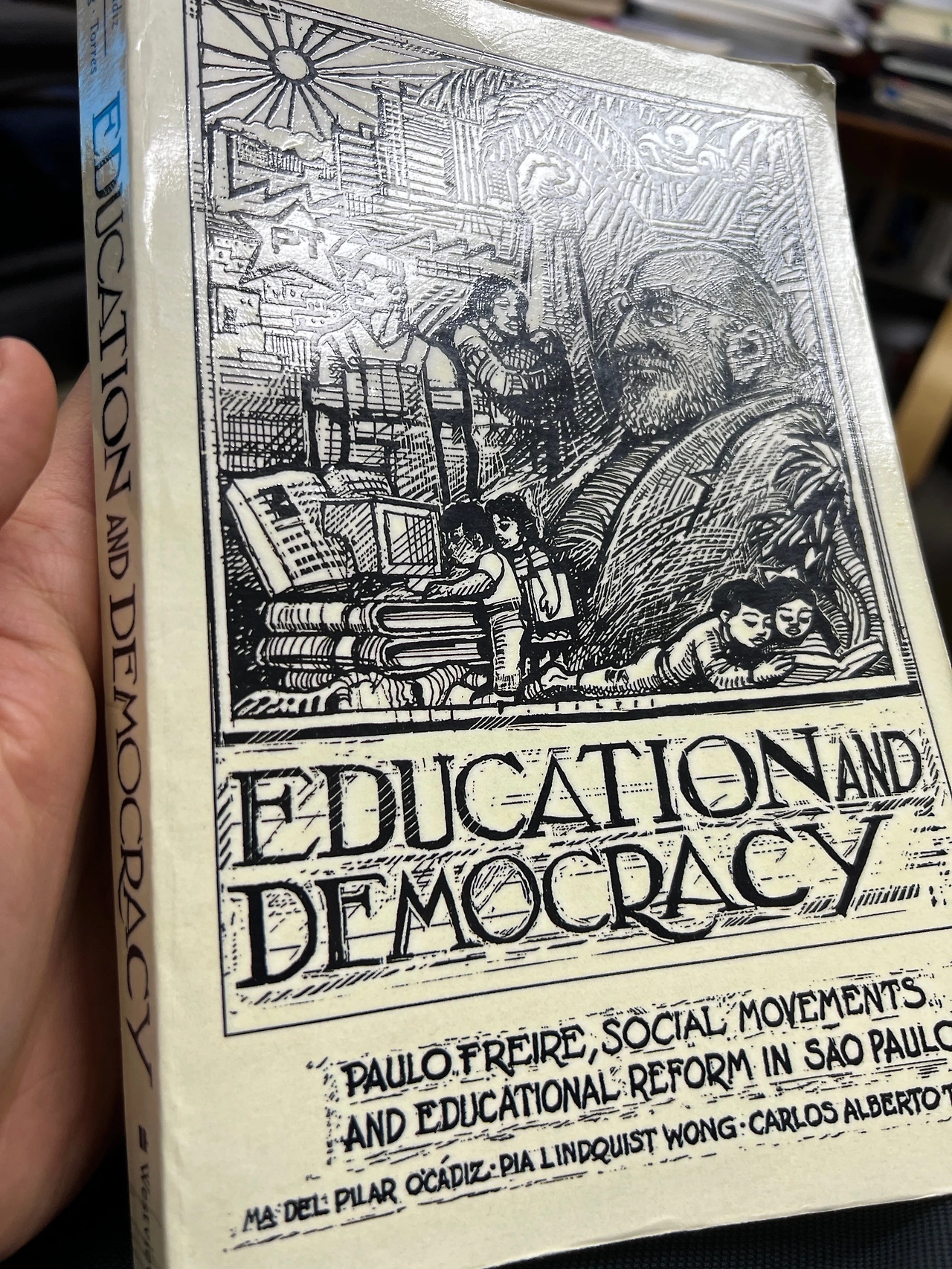 연구실에 내가 도착했을 때는 박사과정생과 교수님이 먼저 대화를 하고 있었다. 기다리면서 책을 구경하고 있노라니 내 연구 분야의 대표학자인 파울로 프레이리의 책이 보인다. 아직 공부 수준이 얕아 이렇게 외서를 착착 사서 읽는 정도 수준이 되지 못한다. 게다가 바깥양반의 임신, 동백이의 탄생이 있어서 올해, 대학원 첫 두 학기는 공부에 전념하지는 못했다. 부끄러운 일이지만 그저 공부란 계속 해 나갈 일이니까.