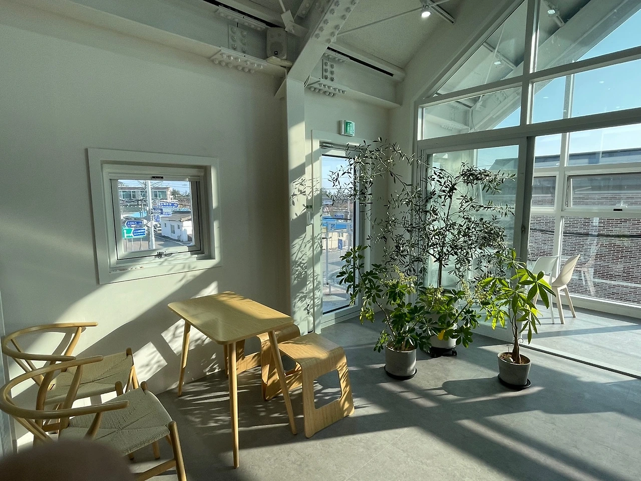 장미경양식과 고식당 사이의 코스로 쉬러 온 곳. 온실뷰를 즐길 수 있는 카페인데 사장님의 선곡 리스트가 내 취향이라 좋았고, 한적한 고성 동네의 분위기라 또 개취.