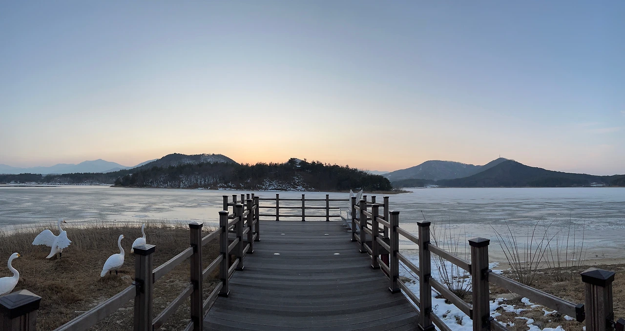 그러나 우리의 그런 시도도 두번째에는 영 좋지 못한 결과로 끝났다. 거진까지 차를 타고 올라가는 길이라 해 저물녘에 걸쳐 송지호에 잠깐 차를 세웠고, 주차장에서 여기 전망대까지 딱 5분 거리를 함께 다녀왔을 뿐인데 그 사이에 차에서 잠을 자던 아이가 혼자 차에 남은 걸 알고 울음을 터트린 것이다. 차에 와서 아이를 봤을 땐 두 눈에 눈물이 그렁그렁한 상태였다. 5분 가량을 혼자 울었으니 오죽 서운하고 엄마 아빠를 원망했을까. 다행히 가슴을 몇번 쓰다듬어주니 진정하였고, 우린 차를 계속 달릴 수 있었다.