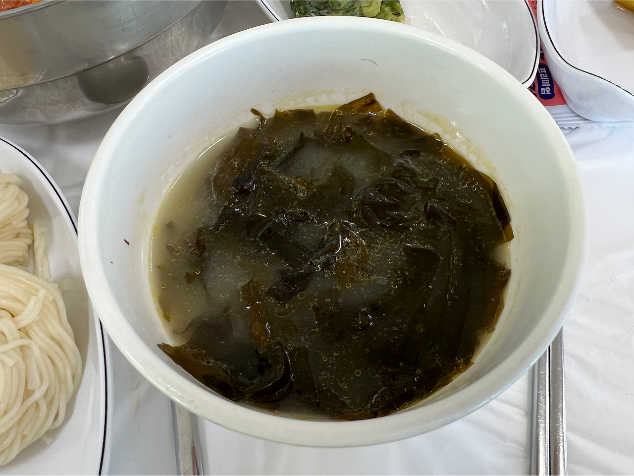 메뉴의 가격과 내부의 분위기, 그리고 알음알음으로 가게를 가득 채운 많은 손님들로부터 이미 좋은 인상을 받았는데 기본 찬 역시 앞의 두집보다 낫다. 특히 이 미역국의 경우에, 따로 사진을 찍을만큼 맛있었다. 원래 물회집의 상당 지분을 이 미역국이 차지한다. 뜨끈한 미역국으로 먼저 속을 달래고 나서 시원하게 물회를 들이키는 것인데, 미역국이 이리 맛있으니 봉포나 청초수가 생각이 날 턱이 있나. 함께 깔리는 단호박찜, 꽁치졸임, 파래전 등 단순한 구색맞추기용이 아니라 하나 하나 제 몫을 하는 반찬들이 또 반갑다.