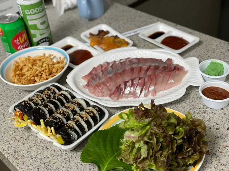 그러나 청호활어센터가 서울에서 흔히 보는 수산시장 스타일에 가깝고, 가격도 중앙시장보다 아주 약간 저렴하다. 그리고 무엇보다 한적하다. 중앙시장 지하의 수산시장에서 회를 사는 것은 무척 고역인데, 그 수많은 집들 중에서 한 곳을 고르는 것도 쉽지 않으려니와 그중 인기있는 집을 가서 회를 썰어달라고 하면 2,30분씩 기다리게 되는 일이 흔하다. 반면에 여기서 회를 사면 미리 전화를 해두고, 도착해서 차에서 내려 1분 이내에 픽업 후 다시 탈 수 있다. 그런 조건인데 가격도 저렴. 방어 한마리를 3만5천원에 구매해 회써는 값만 냈는데, 현금이 딱 천원 부족했는데 깍아주셨다. 우리 말고도 사람이 그럭저럭 있는 편이었는데 아마도 현지인들은 이곳에서 회를 썰어가는듯하다. 아니면 이마트에서 그냥 회를 사거나.