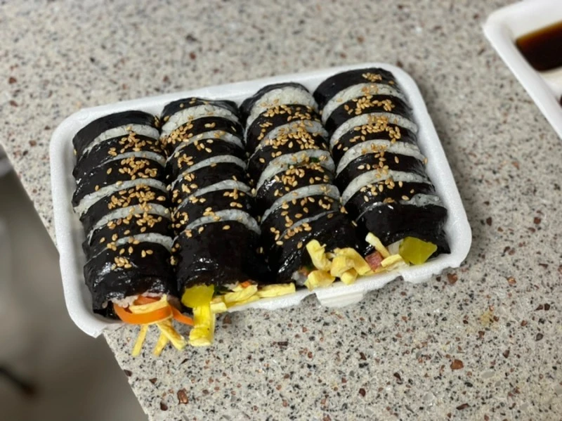 김밥은 지난번에 떡볶이를 먹었던 그때그곳. 닭강정도 회도 다 재끼고 김밥 하나 이거 사러 중앙시장까지 다녀오다니.