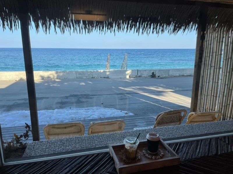 그리고 카페 두곳을 갔다. 한곳은 조용한, 다른 한곳은 오션뷰를 갖춘, 발리 느낌의. 아기를 데리고 다니는 길이니 우리를 받아주는 곳이 어디든 고마운 일이다. 나는 사람 붐비는 것을 딱 질색으로 하고 바깥양반은 핫플레이스에 와 있다는 만족도가 충족되길 원한다. 그러나 여행의 막바지에 내가 고른 곳 하나, 바깥양반이 고른 곳 하나에 들러서 그럭저럭 한적함을 즐기니 괜찮은 마무리. 그리고 어느곳에서나 커피는 그냥저냥하다. 카페는 우후죽순으로 늘어나는데 커피를 제대로 다루는 곳은 없고, 제대로 좋은 커피를 만든다 한들 그것 때문에 오기보단 분위기와 오션뷰가 방문을 정하니, 손님의 입장에선 뭐라 따질 구석도 없다.