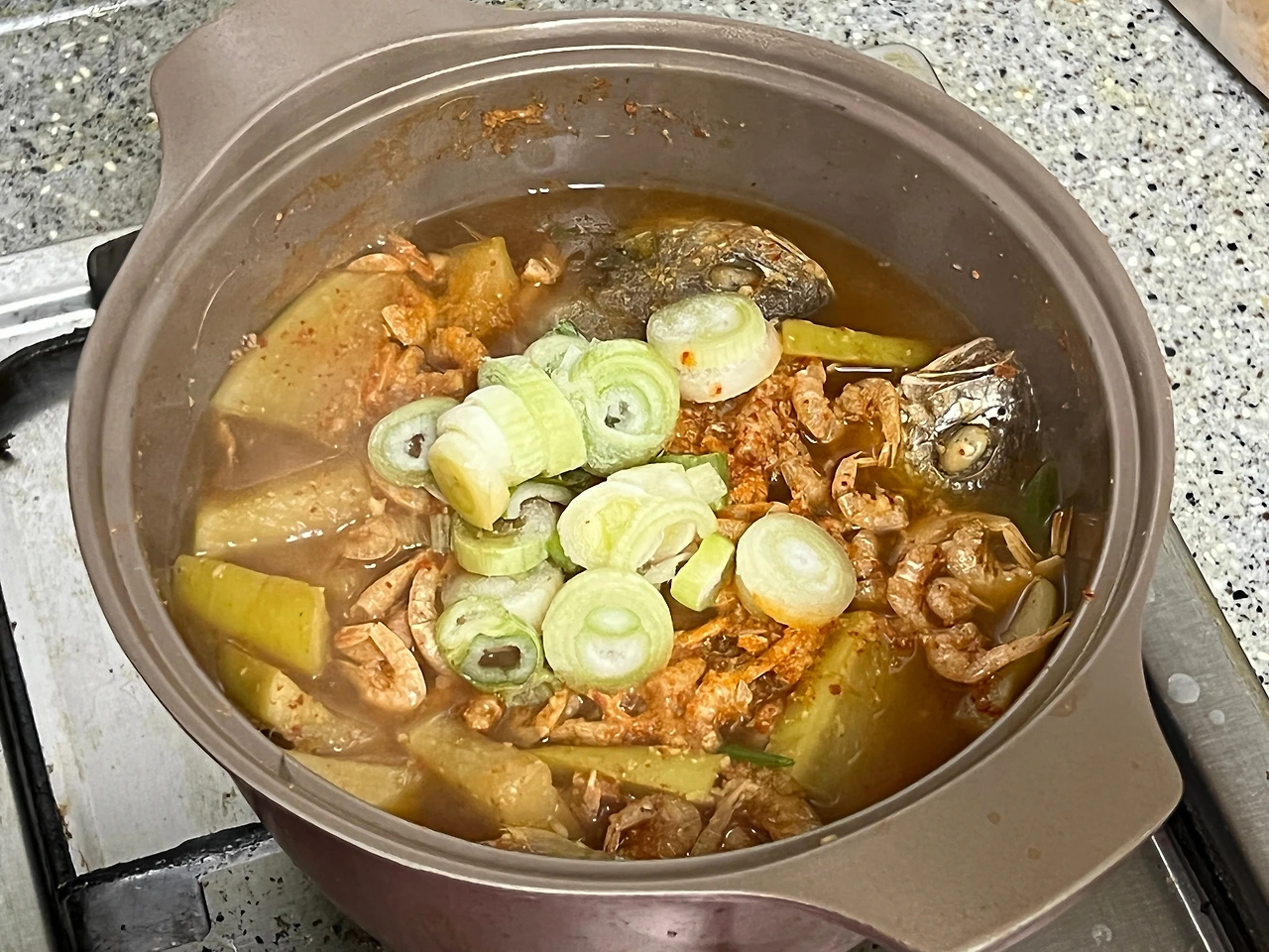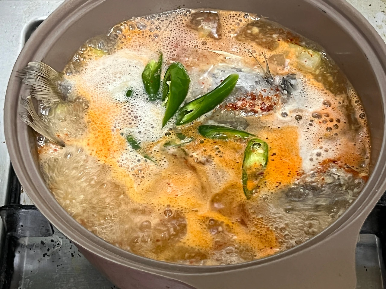 오늘 등장인물이 많군. 서른마리의 조기를 씻어 소분하고 나니, 먼저 냄비에 끓여둔 무가 대강 익었다. 특별히 실팍한 놈으로 셋을 골라 냄비에 넣고, 마늘 크게 한스푼, 생강 작게 한스푼을 넣고 된장 반스푼, 고춧가루 크게 또 한스푼, 그리고 간장을 넉넉히 붓고 고추를 크게 썰어넣었다.