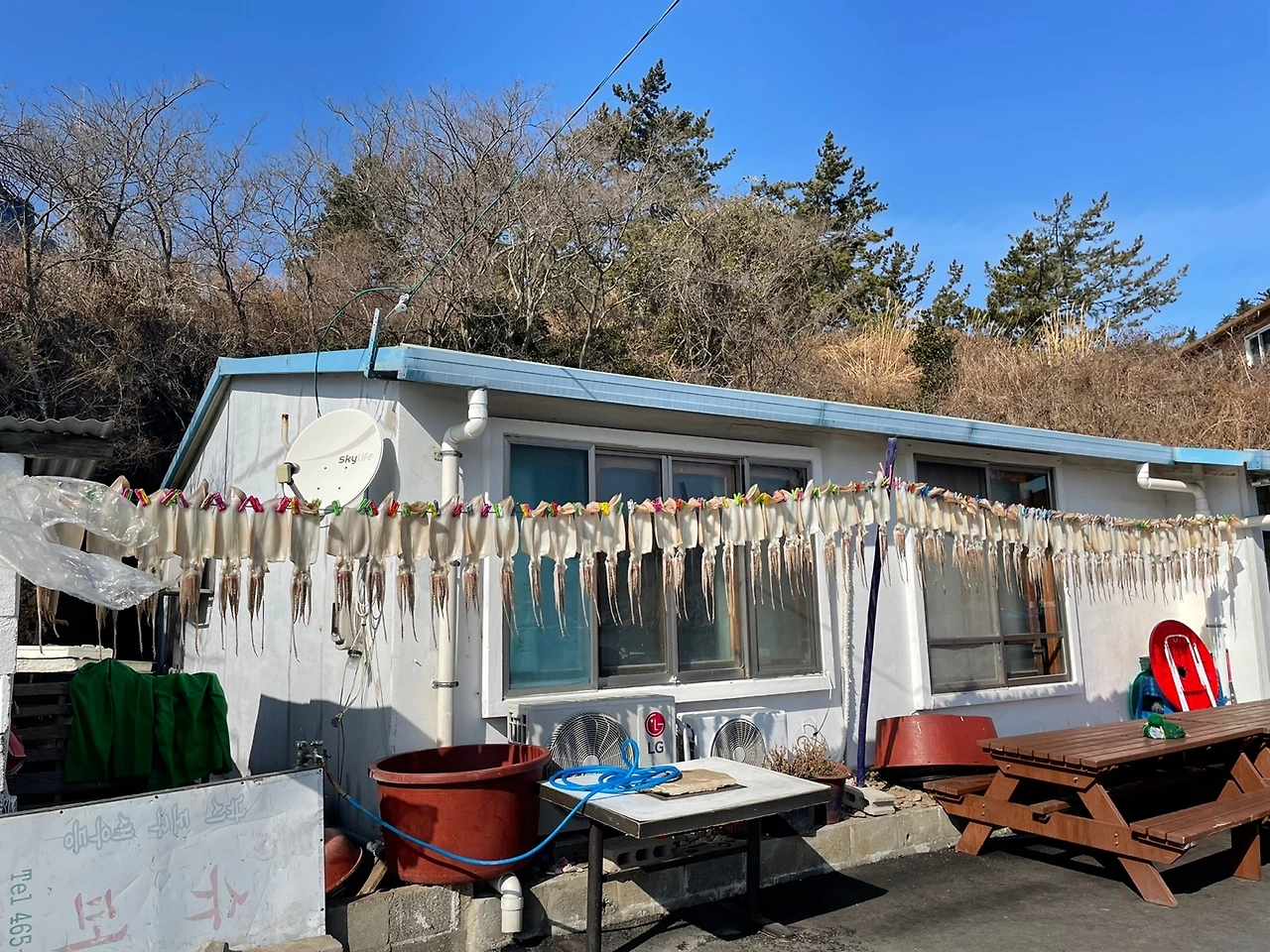우리는 워낙 날씨도 춥고 칼바람인 탓에 사진만 찍고 후다닥 물러났는데, 내 눈엔 옥돌해변 입구에 있는 생선가게가 하나 눈에 걸렸다.