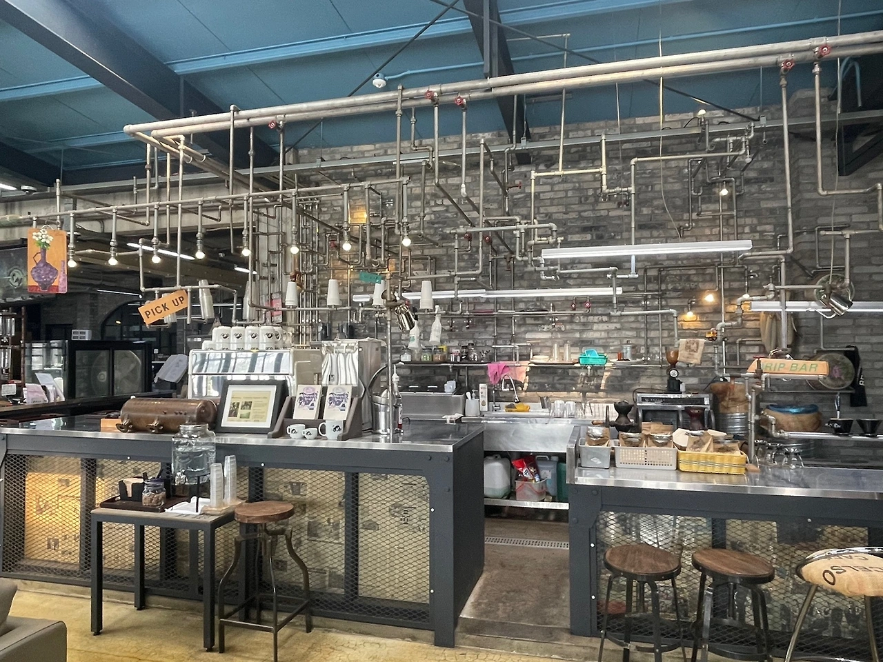 바리스타님이 바쁘시다. 테이블이 15개는 될법한 제법 큰 공간인데 2월의 평일 오후, 혼자 지키는 시간인지 혼자서 로스팅에, 커피를 내리는 일에 바쁘다. 또 카운터로 달려가서 손님의 주문을 받으며 손끝으로 가리킨 자리엔 드립 바가 있었다.