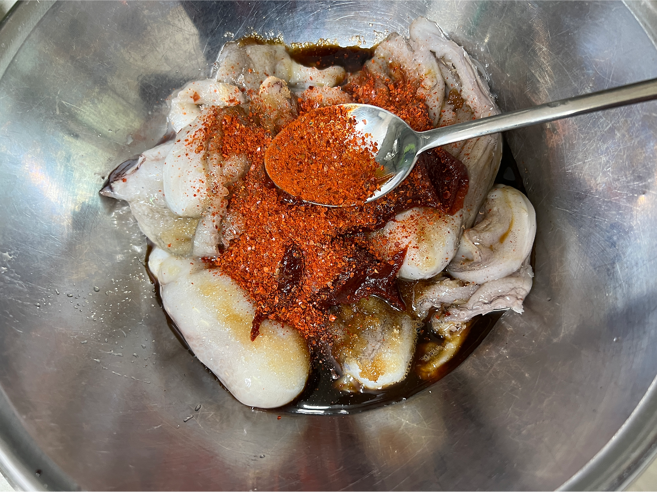 요령은 비슷하기도 좀 다르기도 한데, 볶음을 할 경우니까 먼저 머리를 충분히 볶아야 한다. 아니면 따로 머리는 데쳐두어도 좋겠지. 요는 다리 부분이 쫄아붙지 않게 해야한다는 것이다. 되도록 다리가 짧은 시간만 가열될 수 있도록, 그래서 쭈꾸미가 탄력있는 식감을 유지할 수 있도록.
