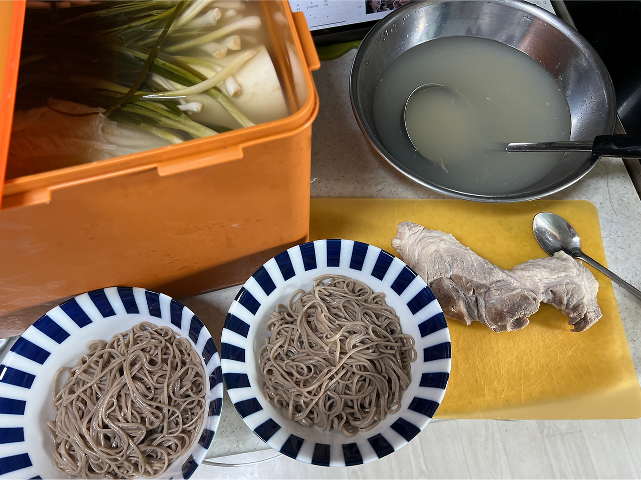 뭐 그래, 그렇게 막국수가 완성되었다. 나는 방에서 아이와 자고 있는 바깥양반을 불렀고, 우리는 아침식사를 성대하게 "막" 치렀다.