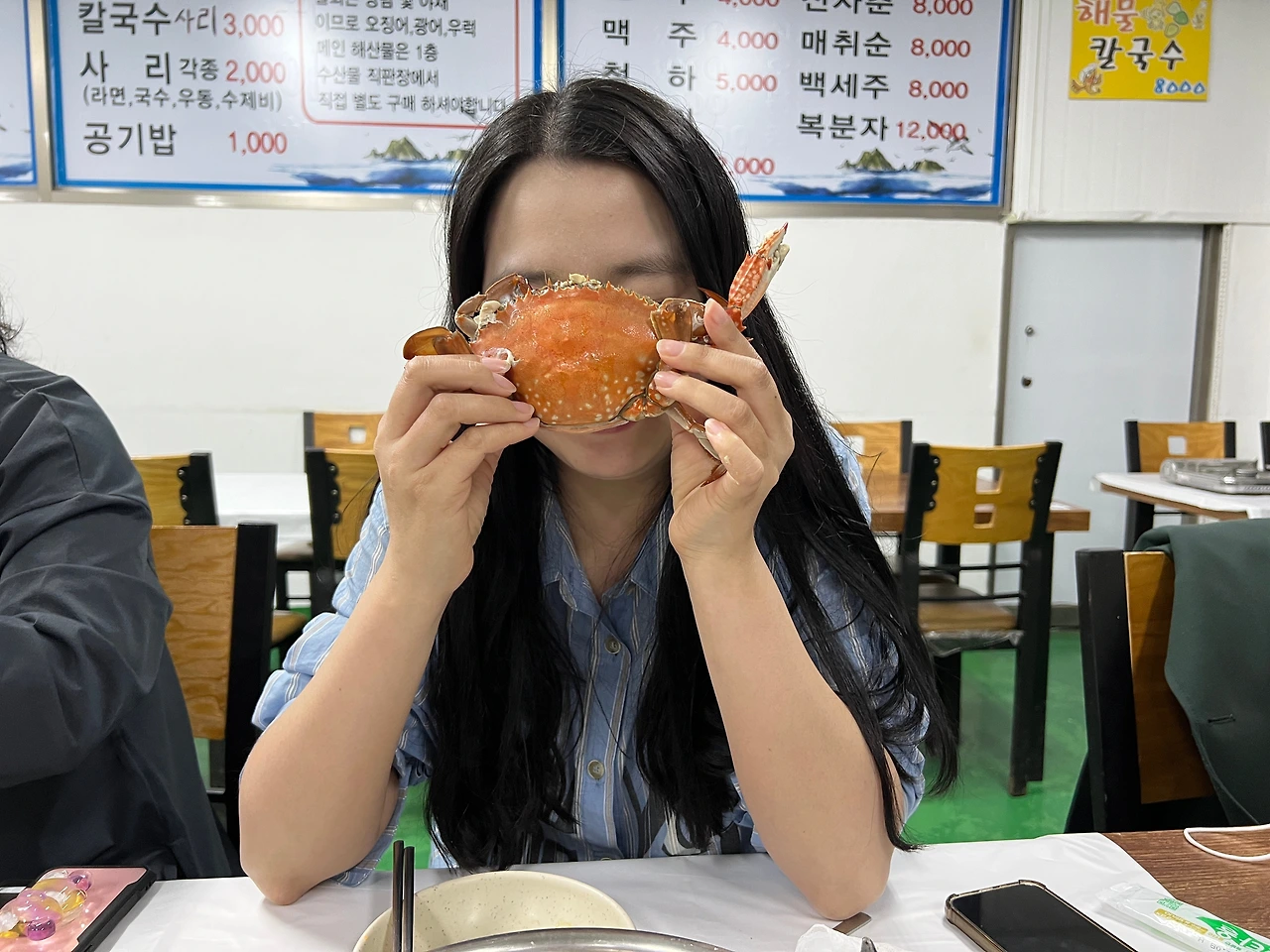 특히 꽃게에 대해선 누구보다 전문성 있게 먹을 수 있는 우리 부부는, 이 싱싱한 꽃게를 마음껏, 한껏 먹었고 꽃게 먹기에 서투른 다른 부부들 역시 지금만 맛볼 수 있는 이 각별한 게미진 맛을 천천히 오래 즐겼다.