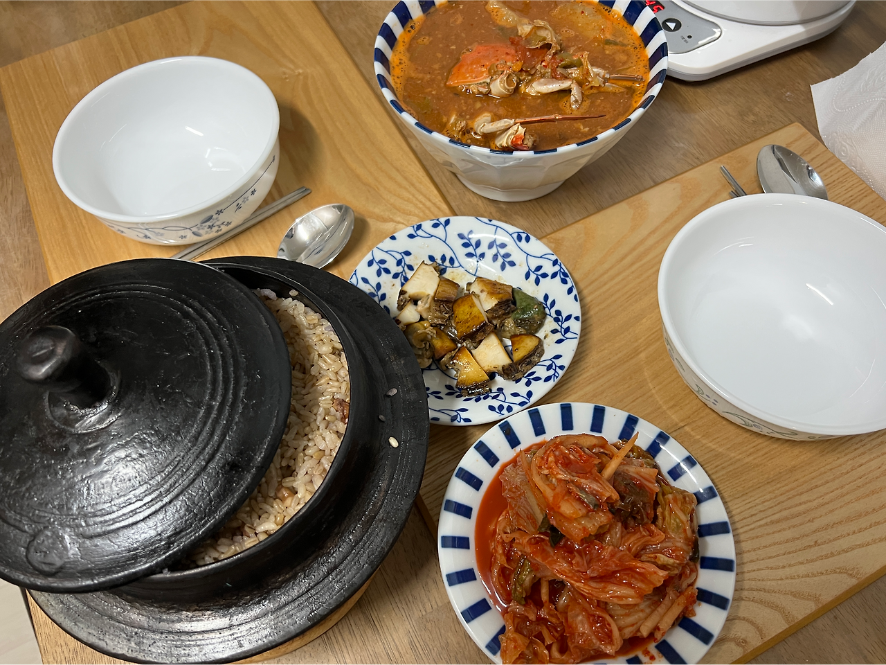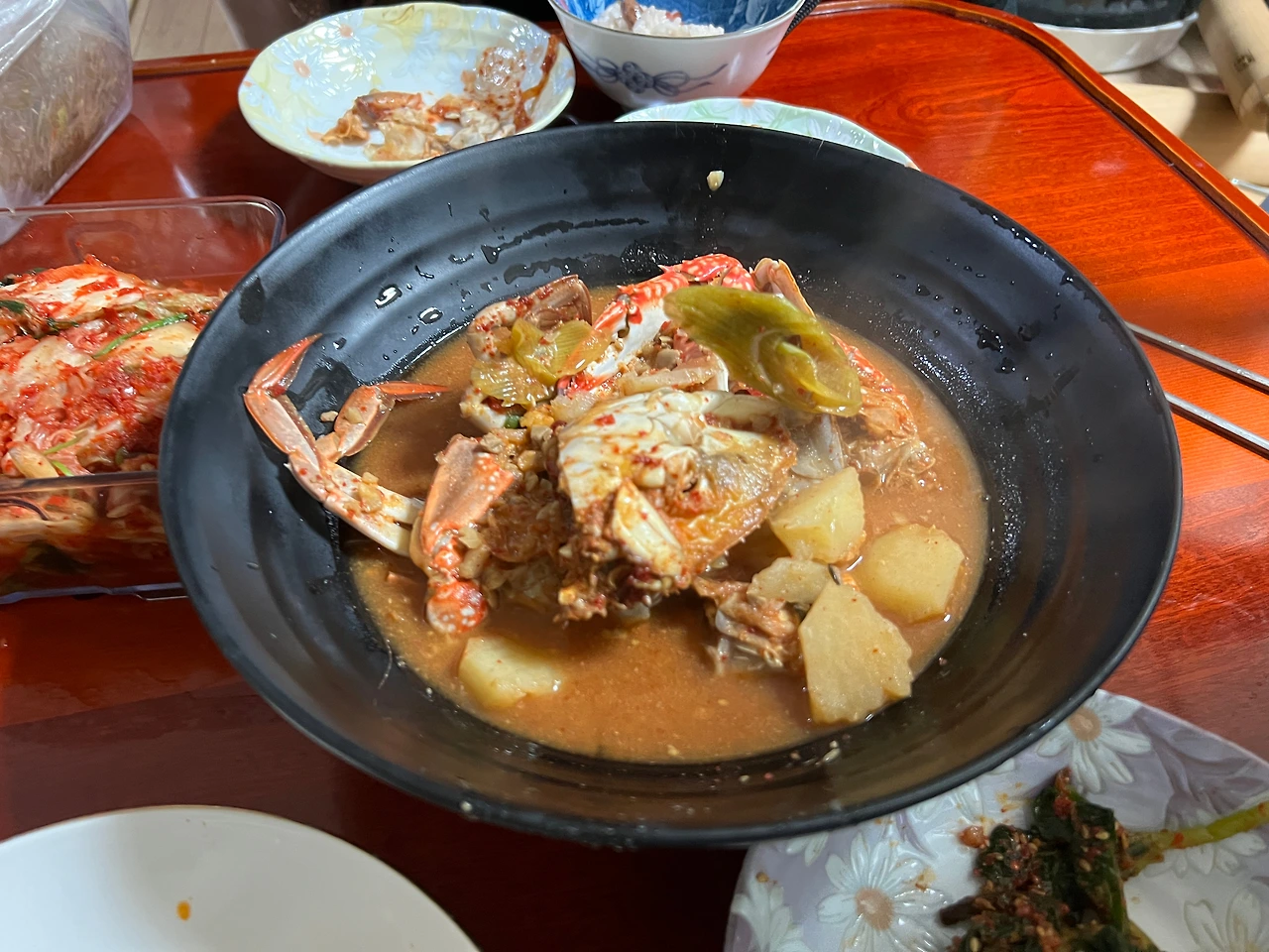 그리고 나는 꽃게탕을 꺼내 데우기 시작했는데 이것은 태안 이모께서 우리 일행이 가니 끓여주신 것이다 그렇다 태안 자연산 아 꽃게는 원래 자연산 뿐인가 할튼 태안 산지 직송 꽃게탕으로서 태안 셋째이모께서는 냉동 말고 산놈으로 사느라 알이 좀 작다 하셨으되 이것은 생물로 끓인 꽃게탕이라 맛이 좋은데 이모께서 우리를 싸주셨다 꽃게탕 솥밥을 했으니 이왕이면 한 상 제대로 차리면 좋겠지 그런데 나는 지금 바쁘잖아 퇴근하고 와서 전복솥밥을 하고 있잖아 벌써 전복손질하고 밥하고 해서 얼추 한시간이나 지났잖아 그리고 버터구이까지 하고 있고 그러잖아 전복솥밥에 어울리는 한상을 차리려면 제법 애를 써야할 텐데, 이모의 꽃게탕 한방으로 해결이 되어버린 것이다