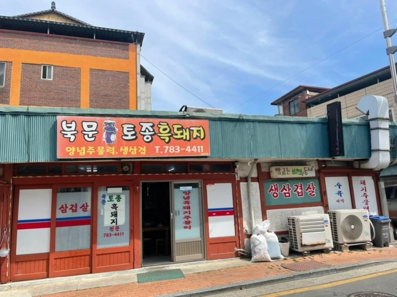 북문토종흑돼지 식당은 하동 여행의 마지막 코스였다. 숙소에서 조식을 간단히 먹고 나와 산책을 하다가 점심을 먹고 올라가기로 했다. 대여섯시간을 차를 몰아야 하니 든든히 먹어야 하겠다. 그리고 하동이나 구례에서 몇가지 다른 음식들은 먹어보아서 마땅히 다른 먹을거리가 없기도 했다. 점심에 흑돼지 삼겹살이니 과하긴 하다만, 또 블로그 소개글들을 보면 묘하게 구미가 당기기도 한다. 특히 주물럭과 김치찌개가 맛있다나.