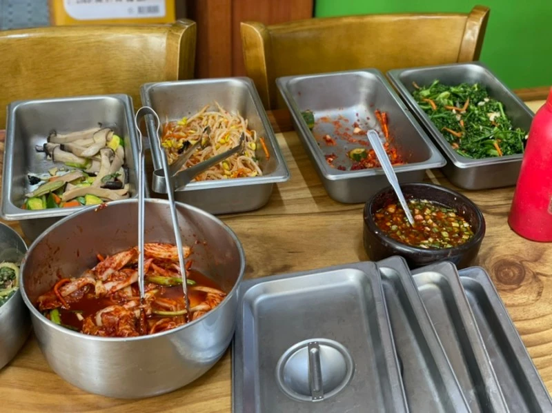 사장님의 음식 차림이 재미있다. 삼겹살집 반찬이라기보단 그냥 밥집 반찬이다. 그도 그럴것이, 하루 장사를 하고 있노라면 고기를 사먹는 사람들보다 찌개들, 식사류를 찾는 현지인들이 적지 않을 터다. 그러니 이웃들을 위해서는 이런 깔끔한 반찬들이 제격이지.