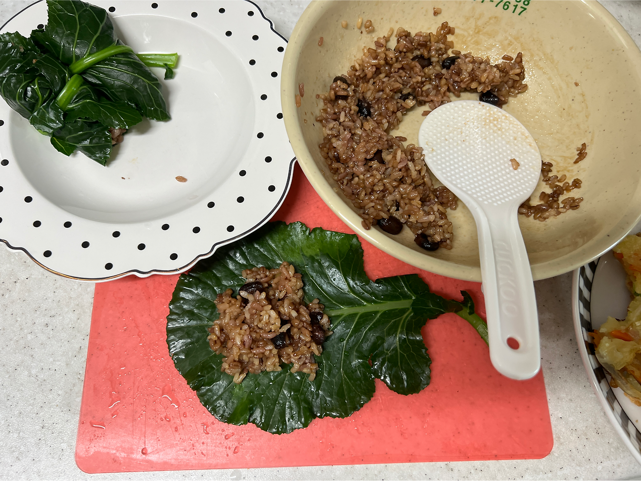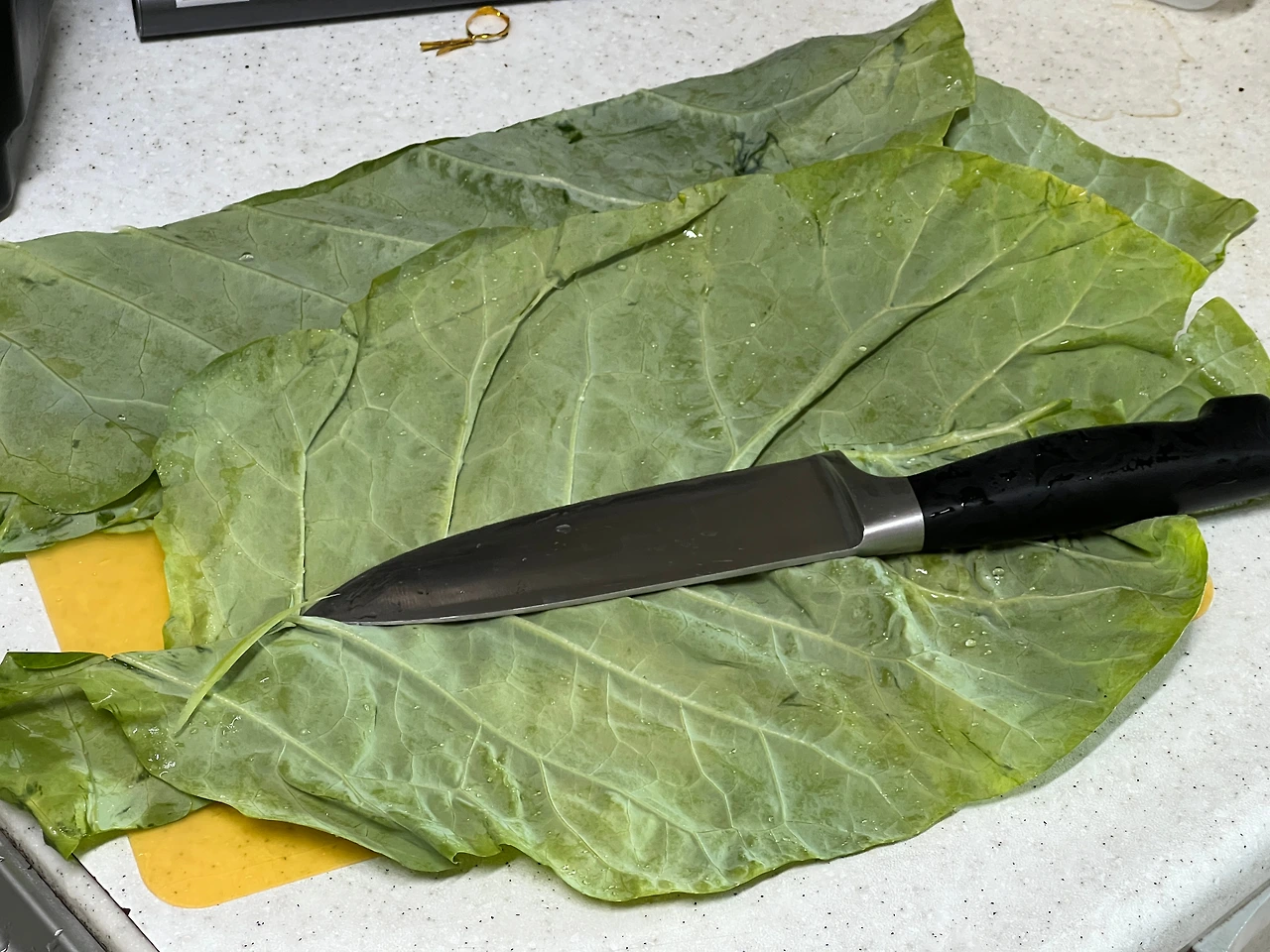 그런데 케일이 조금 문제다. 일단 어렵사리 케일을 사오긴 했는데 잎사귀는 손바닥보다 조금 작다. 가운데에 대가 있어서 이게 잘 쌈이 싸질까? 싶다. 하긴 당연한 고민인 것이, 식당에선 쌈을 위해 적당한 사이즈의 케일만을 따로 구매하거나 할 것이고, 나에겐 그런 선택지가 없다. 파는 걸 사서, 그것을 어떻게든 만들어내야 하는 것이다.