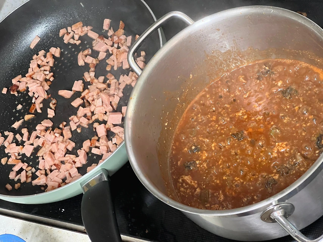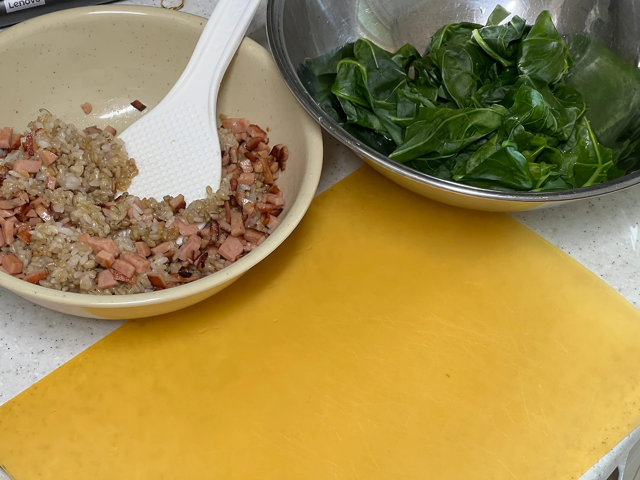 물로 씻어내어 탁 털어냈는데 A4 사이즈의 얖은 간이 도마에 다 안올라가진다. 쌈을 방해할 대를 잘라 데친다. 케일이 잎새가 두꺼워 충분히 데쳐도 흐트러지거나 하지 않다. 그리고 스팸을 다진다. 바깥양반이 스팸을 워낙 좋아했기 때문에. 그리고 지난주에 볶음밥을 만들고 남은 스팸이 있어서 이번에 쓰면 좋다. 밥은 새밥으로 지어두었고 모든 것은 준비가 되었다. 가장 중요한 강된장. 물을 더해 끓여서 자작하게 소스처럼 만든다. 그리고 지난번 바깥양반의 말대로 접시에 미리 부어두었다. 준비는 끝.