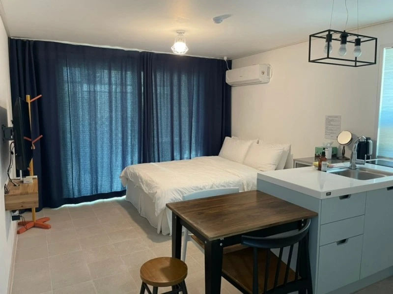 어쨌든간에 캐리어 모양을 딴 각 동이 이채롭다. 막상 가서 보면 단지가 크지 않고 건물도 군데군데 낡은듯 보이는 것이 볼품이 없지만 사진을 찍기엔 딱 좋다. 입구 부근에서 나무를 다듬고 계시던 사장님은 친절하게 우리를 안내해주셨고, 방은 쾌적하고 깔끔.