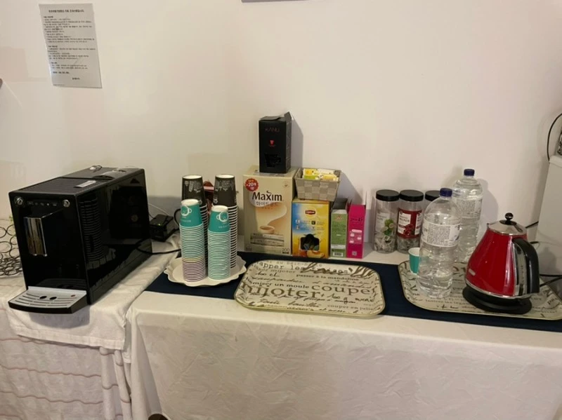 뭔가가 뭔가다. 정말 놀랍게 친절하고 자상한 배려다. 멜리타 커피머신에 원두까지 넉넉히 챙겨둘 건 뭐람. 전날 밤, 노래방에 들어가기 전에 휴게실을 먼저 구경하면서 사장님과 나는 커피머신에 대한 대화도 나눴다. 내가 집에서 쓰는 것의 하위 모델이다. 사장님은 4년째인가, 그 전에도 같은 모델을 쓰시다가 버리고 같은 모델을 새로 사서 쓰고 계시다고. 저렴한 전자동머신이긴 해도 정가가 40만원대다. 이렇게 펜션에 턱 하니 깔아둘만한 물건은 좀 넘는다. 캡슐 에스프레소머신 쪽이 훨씬 관리하기가 편하지. 이렇게 멜리타 전자동 머신을 턱 하니 깔아둘 일인가. 이런 모든 점이 놀라운 점이었다 내겐.
