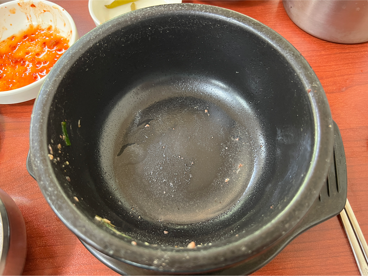 비단 그때만이 아니라 오늘도 그랬다. 첫 입맛에 짭짤하게 느껴지길래 새우젓 간을 아주 살짝만 했는데, 김치며 깍두기며 함께 와구와구 먹다보니 이내 국물이 싱겁게 느껴지기 시작했다. 그러나 그대로 먹었다. 이 식당에서 느껴지는 그 맛이 소금으로 혀를 찔러대는 맛과는 딴판인 것임을 알고 있으니, 마지막 한 숟갈까지 만족스럽게 먹을 수 있었다.