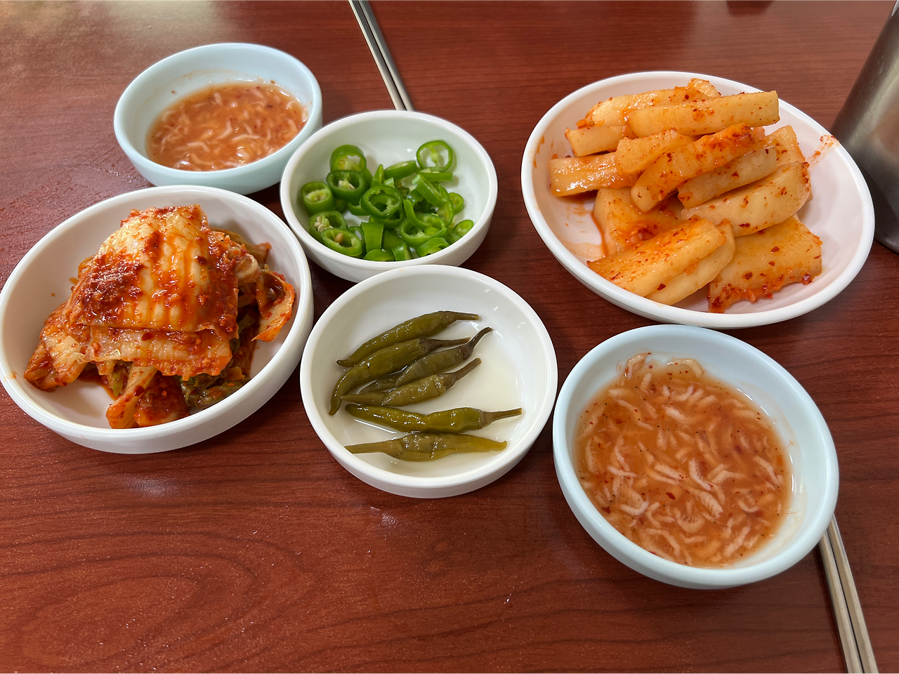 원래는 인터뷰를 할 목적이었으므로 나는 녹음 어플을 켜려고 했는데, 우리가 들어갔을 땐 텅 비어있던 식당이, 자리에 앉자 옆에 10명 정도 들어와 자리를 채웠고, 조금 더 있으니 홀의 여덜아홉 정도 되는 테이블이 꽉 찼다. 인터뷰 녹취는 카페에서 해야겠다. 대신에 인터뷰에 대한 이야기, 학교 이야기로 운을 떼며 깍두기를 먹었는데…일단 깍두기. 맛있다.