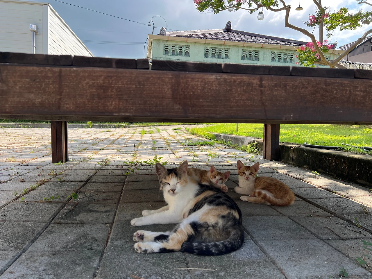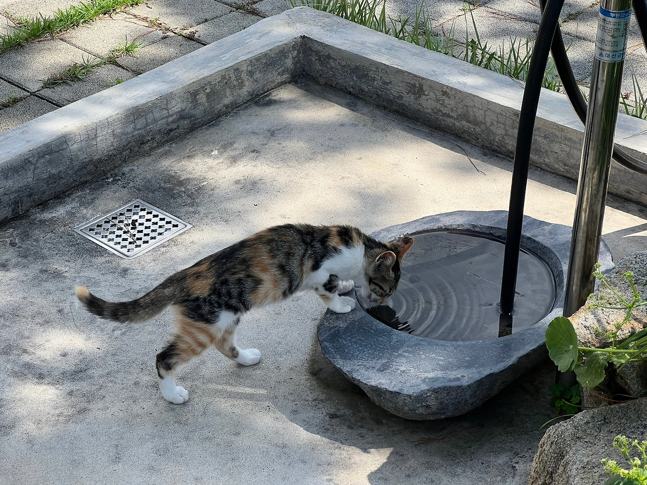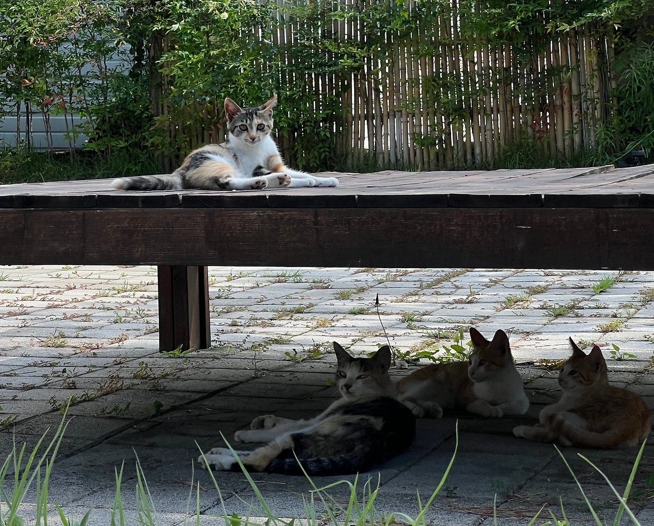 날씨가 이리 좋으니, 자연스럽게 이 대나무 평상 아래 누워서 그늘을 피하며 수박을 썰어먹는 그림이 그려진다. 그러나 고양이를 질색하는 아내로 인하여, 마당을 지배하고 있는 고양이 4남매로 인해 마당에서 노는 것은 포기했다.