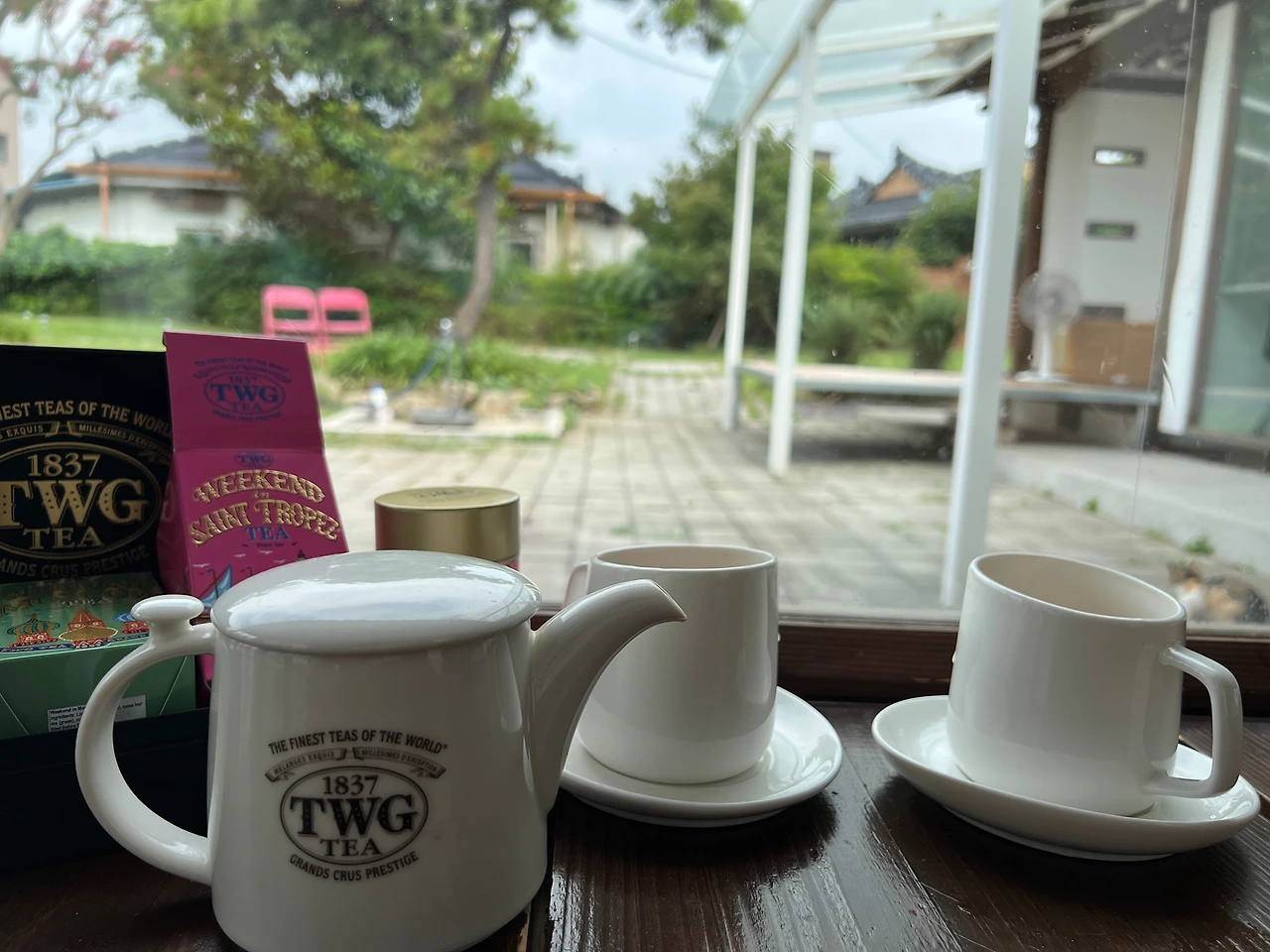 그러고 나선 모든 준비를 마치고, 모든 짐을 차에 싣고 잠시 티 타임을 가졌다. 주방에서 툇마루로 자리를 옮겨, 몇 해 전 출장에서 사온 TWG 차를 내린다. 장기간 여행 일정이라 커피와 홍차 추출도구를 따로 챙겨왔다. 그리고 그러길 정말 잘했지 뭐야. 좋아하는 일을 한다라면 이왕이면 내가 갖고 있는 최상의 세팅에서 해야한다. 이런 좋은 공간에 왔으니 숙박에서 제공하는 캡슐커피보다는. 티백보다는. 좋은 커피와 좋은 홍차로.