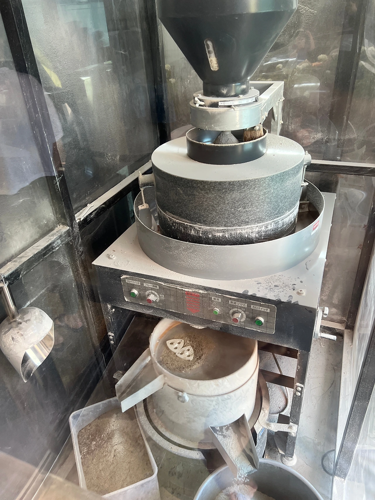 "아까 가게 입구에 나오면서 맷돌 있었잖아. 그거 볼 땐 어땠어?"