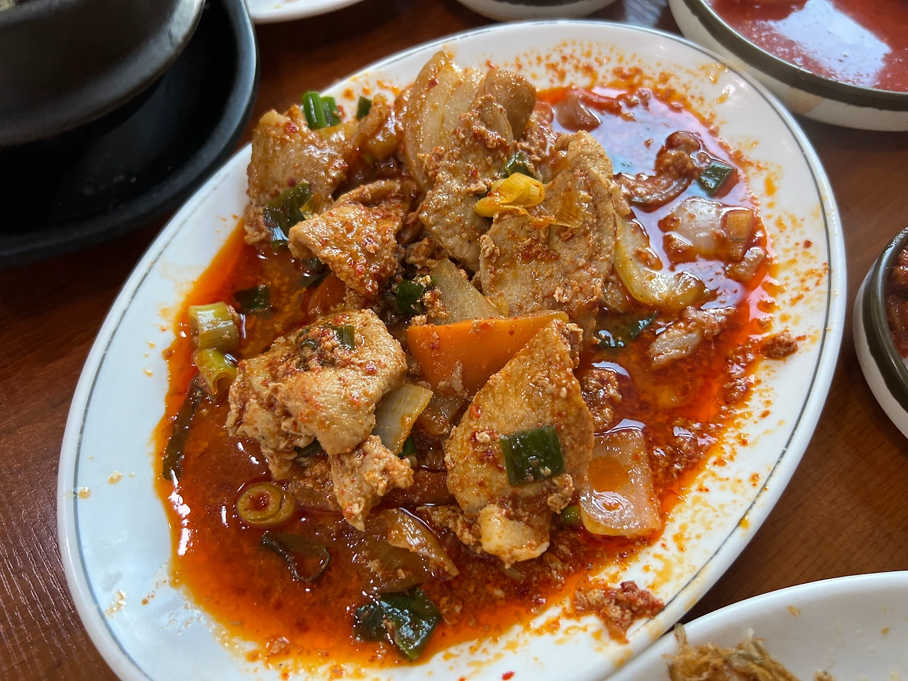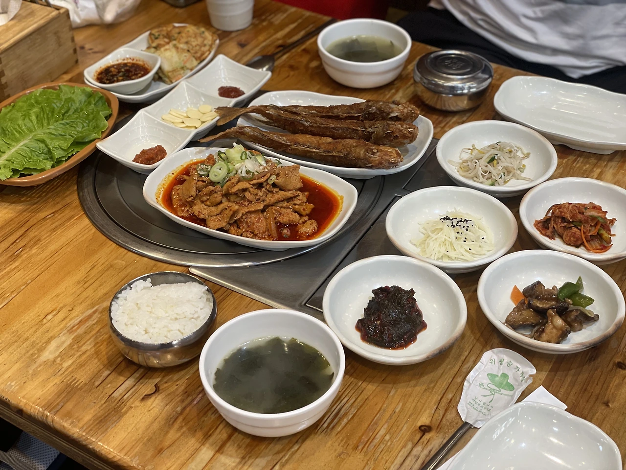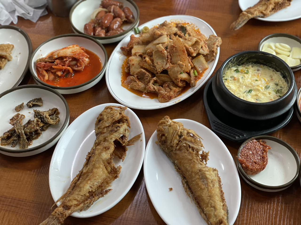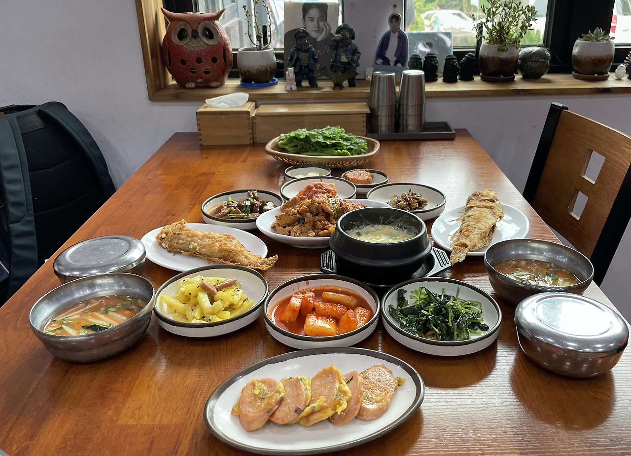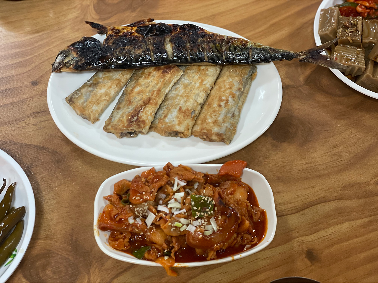 다만 천원의 가격차이를 감안하더라도 녹색식당과 비교해 계란찜이 없고 제육도 비계보단 살코기가 많다. 게다가 너무 얇다. 옥돔은 녹색식당에 비해 0.5마리를 더 내어주시는 것은 큰 메리트지만, 제육이 조금 맛이 덜한 점은 아쉽다. 그러나 제육의 아쉬움은 갈치젓갈로 만회! 나는 부침개와 갈치젓갈, 그리고 가지볶음은 두번이나 리필해서 먹으며 밥을 싹싹 비웠다. 가지볶음만 세접시를 먹느라 제육은 반절이나 남겼다.