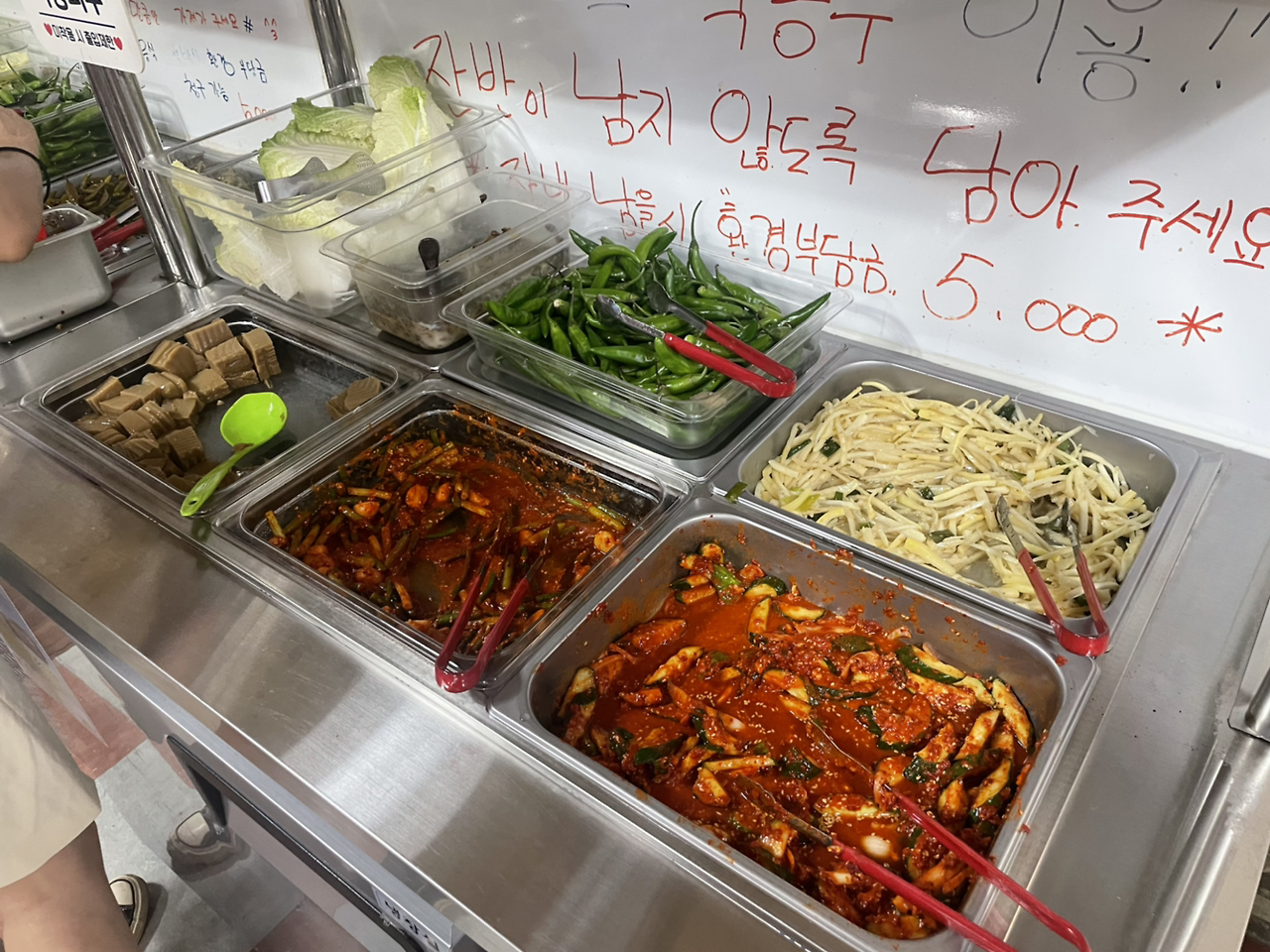 여기는 사실 우리 마음속의 넘버원 같은 집인데 녹색식당이나 곤밥2에 비해 현저히 유명세가 떨어진다. 아무 때나 가도 웨이팅을 오래 하지 않고 먹을 수 있다. 그리고 식당에서 일하는 인원이 많아 상은 빨리 치워지고, 서빙도 빠르고, 반찬은 셀프여서 알아서 원하는만큼 가져다 먹을 수 있다. 반찬이 셀프라는 점에서 메리트가 무척 큰 집.