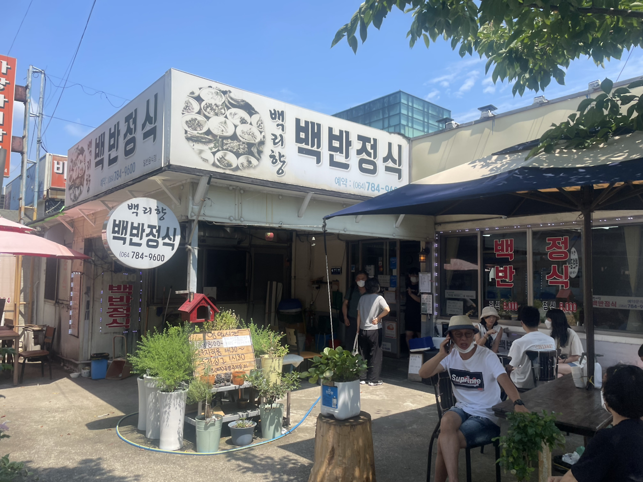 제주도는 의외로 백반의 성지라고 할 수 있다. 지금도 곳곳의 수많은 밥집들이 저마다 알찬 한상 차림으로 수십팀의 대기손님을 줄세우며 성업중이다. 제주도까지 가서 갈치, 전복솥밥, 흑돼지를 먹지 않고 왜 백반이나 먹겠나 싶지만은, 그게 꼭 그렇지만도 않은 게, 한정식이 음식 장르의 한 카테고리이듯, 백반이나 정식도 음식 카테고리의 하나로 당당히 올라있다. 백반은 백반 나름의 맛과 멋, 그리고 장점이 있다. 한국인의 식탁에 "반찬"이 빠질 수 없기 때문. 그러니까 이 백반이란, 거창한 메인디쉬가 아니라 익숙하고 친숙한 메인반찬과 밑반찬 예닐곱개를 흰 쌀밥과 함께 맛보는 고유의 맛이라는 것.