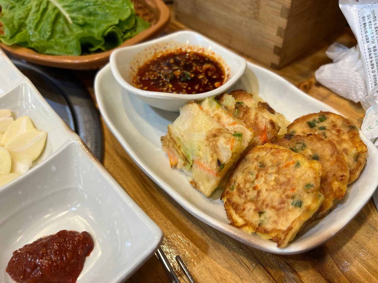 우리는 아이와 셋이 먼저 한번, 그리고 뒤에 초대드린 장인어른과 장모님을 모시고 다섯이서 또 한번 방문했다. 두번째 가니 반찬 몇가지가 바뀌어있었다. 그 역시 입맛을 당기는 해파리냉채, 가지볶음, 비엔나소시지 볶음 같은 반찬들. 나는 생선껍질 조림을 갈 때마다 리필해 먹었다.