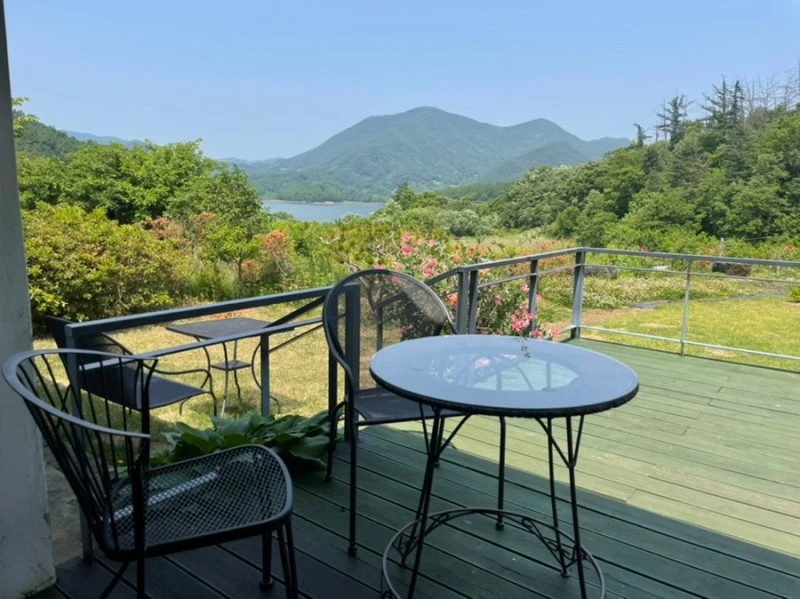 우리가 도착했을 땐 작은 가게에 절반 이상은 비어 자리가 조금씩 여유가 있었는데, 실내를 잠깐 구경하고 나오니 주차장도 가득 차고 테라스 자리까지 가게가 꽉 찼다. 운이 좋았다고 할까. 그러나 정성을 들이는 탓인지 차가 좀처럼 나오지 않는다. 실내도 살짝 구경하고 나와, 차를 마시기 시작했다.