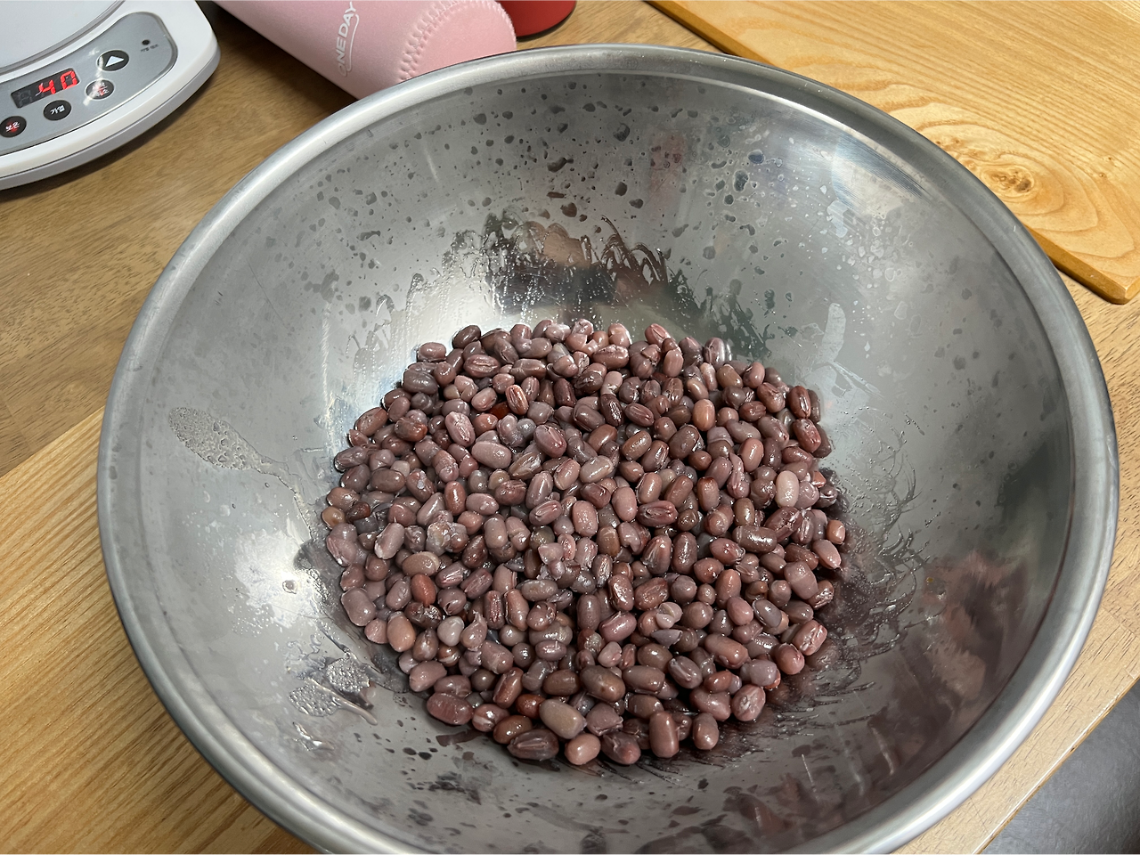 나는 대강 밥 한공기 정도의 팥을 불리기 시작했다. 내가 장을 봐서 집에 온 것이 대강 12시. 삼신상 준비는 새벽 3시이므로 시간 여유는 충분히 있다. 그러나 혹시 몰라서 스피드업을 하기로 한다. 집에 머무는 시간 동안 왔다 갔다 하면서 팥 불리는 물을 계속 갈아주며, 상당한 고온에서 콩을 불렸다. 이렇게 하면 조금이나마 빨리 불려지지 않을까.