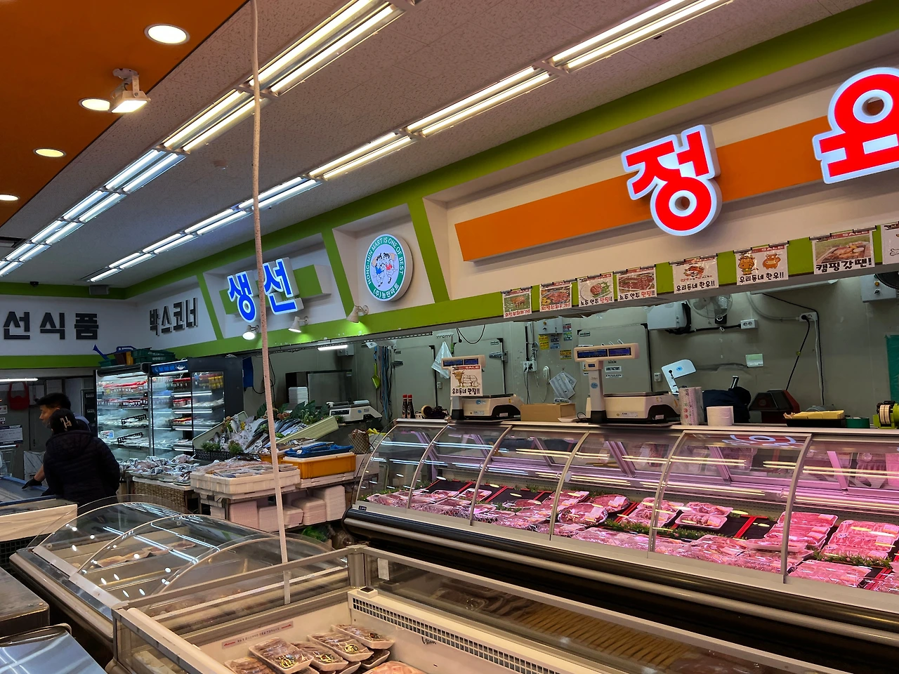 그거는 그러니까 해물부추전을 만들려고 낙지와 새우을 사려가던 길. 그러나 당연히 조금 둘러봐야겠지. 하고 생선코너까지 가는 길에 정육코너를 휭 보는데 육회가...만원. 만원이다.