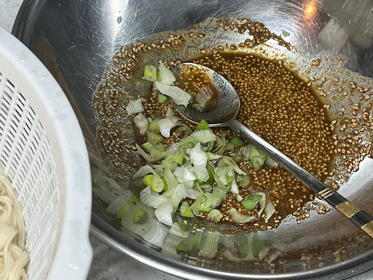 쪽파를 4대를 하라는데, 없다. 사실 쪽파까지 꼭 사야하나 싶긴 하다. 대파를 흰 부분 위주로 쫑쫑 작게 썰었다. 통 들깨는 없지만 들깨 가루는 있다. 거기에 참깨를 좀 얹었다. 이쯤만 되어도, 이미 레시피와는 멀리 멀리 가버리고 있는 상황. 다행히 나머지 양념들, 간장과 참치액, 올리고당과 설탕까진 있으니까. 대략 레시피에 맞춰갈 수 있겠다.