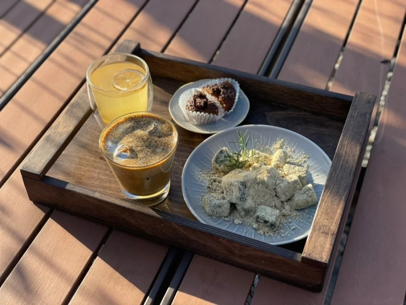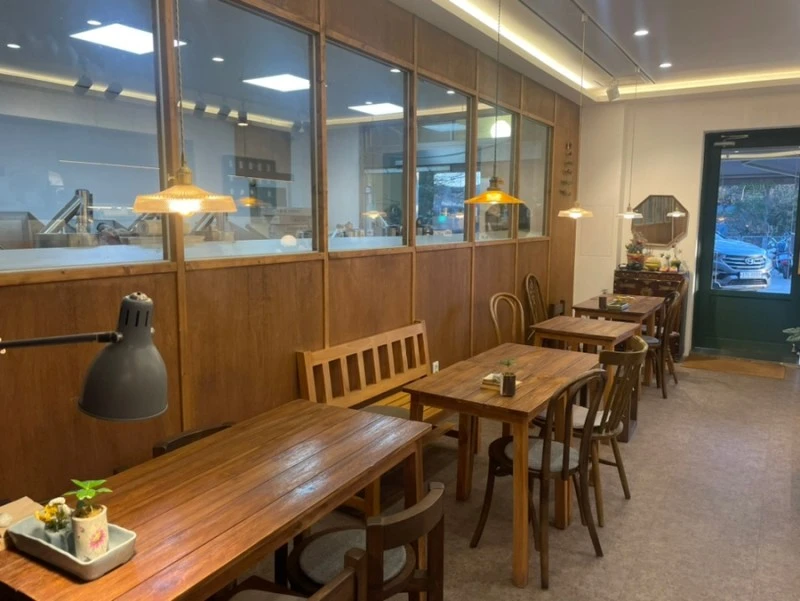 여기는 이런 곳이다. 장흥면의 논밭에 둘러싸인 작은 동네에 자리잡은 오랜 방앗간을 개조한 카페 겸 방앗간. 지금도 방앗간으로써의 기능을 유지하면서 협동조합처럼 다양한 농산품도 판매한다. 방앗간 내부도 쾌적하게 리모델링을 했지만 공간이 아무래도 적어, 방앗간 앞 평상을 하나, 그리고 열 평 남짓한 비닐하우스가 제법 예쁘게 차려져있다.