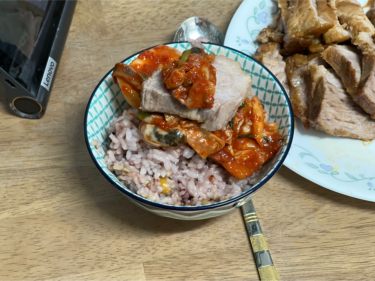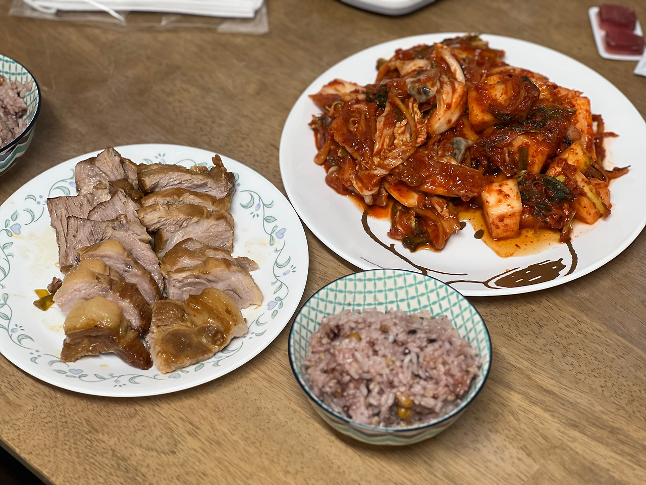 그러나 노력은 배신을 하지 않는 법이라. 비법 양념으로 만든 목살수육. 거기에, 갓 만든 싱싱한 굴김치에 깍두기. 이거 한다고 두시간 넘게 용을 썼다. 근데 또, 이정도 반찬들이 두시간 만에 만들어진다는 것도 참 좋은 일이다. 보자 이 정도면 굴김치도 1월까지 넉넉히 먹겠다. 김치 한포기에 굴만 1.4키로정도니까. 그리고 깍두기도 무가 두개니까. 그렇게 오늘도, 잘 먹고.