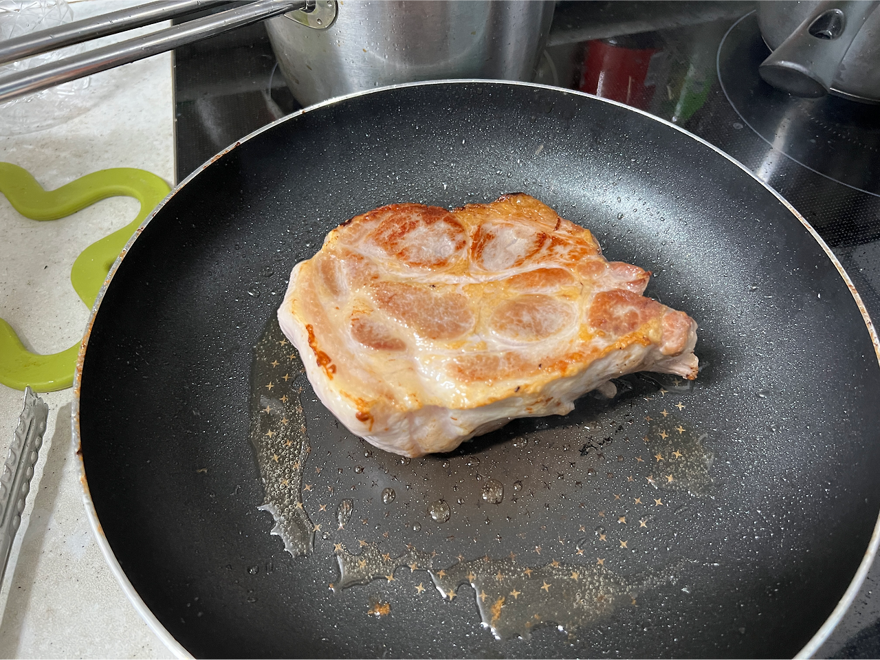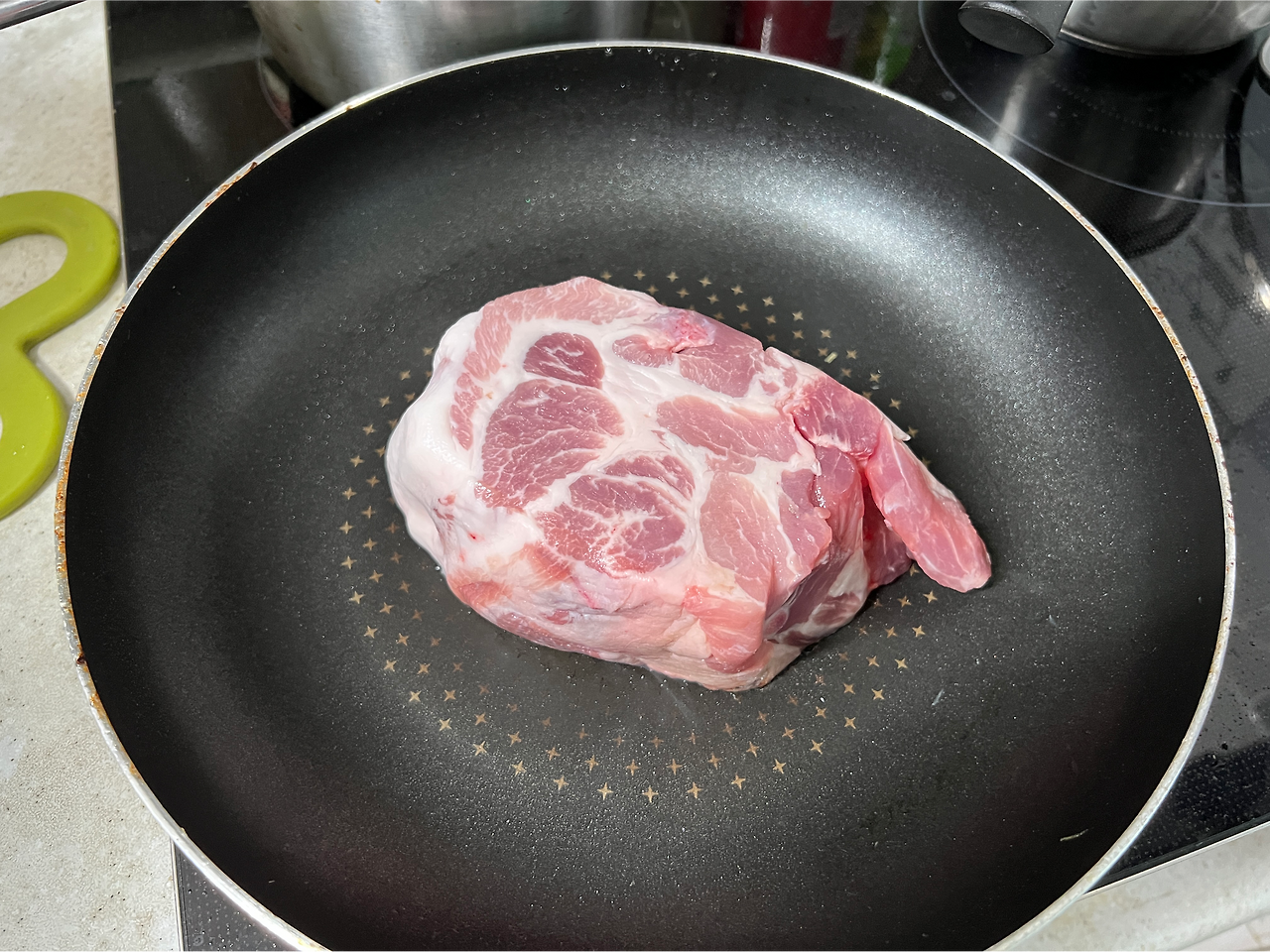 이제 해야 할 일은 보쌈을 만드는 것이지. 인플레이션이어도 고기는 값이 요즘 괜찮다. 목살이 100g에 천오백원 남짓이다. 보쌈을 하기 전에 먼저 식감을 좋게 하기 위해 앞 뒤, 바삭바삭하게 굽는다. 그러는 사이에 갖은 양념을 해서 보쌈을 끓일 육수를 만들고,