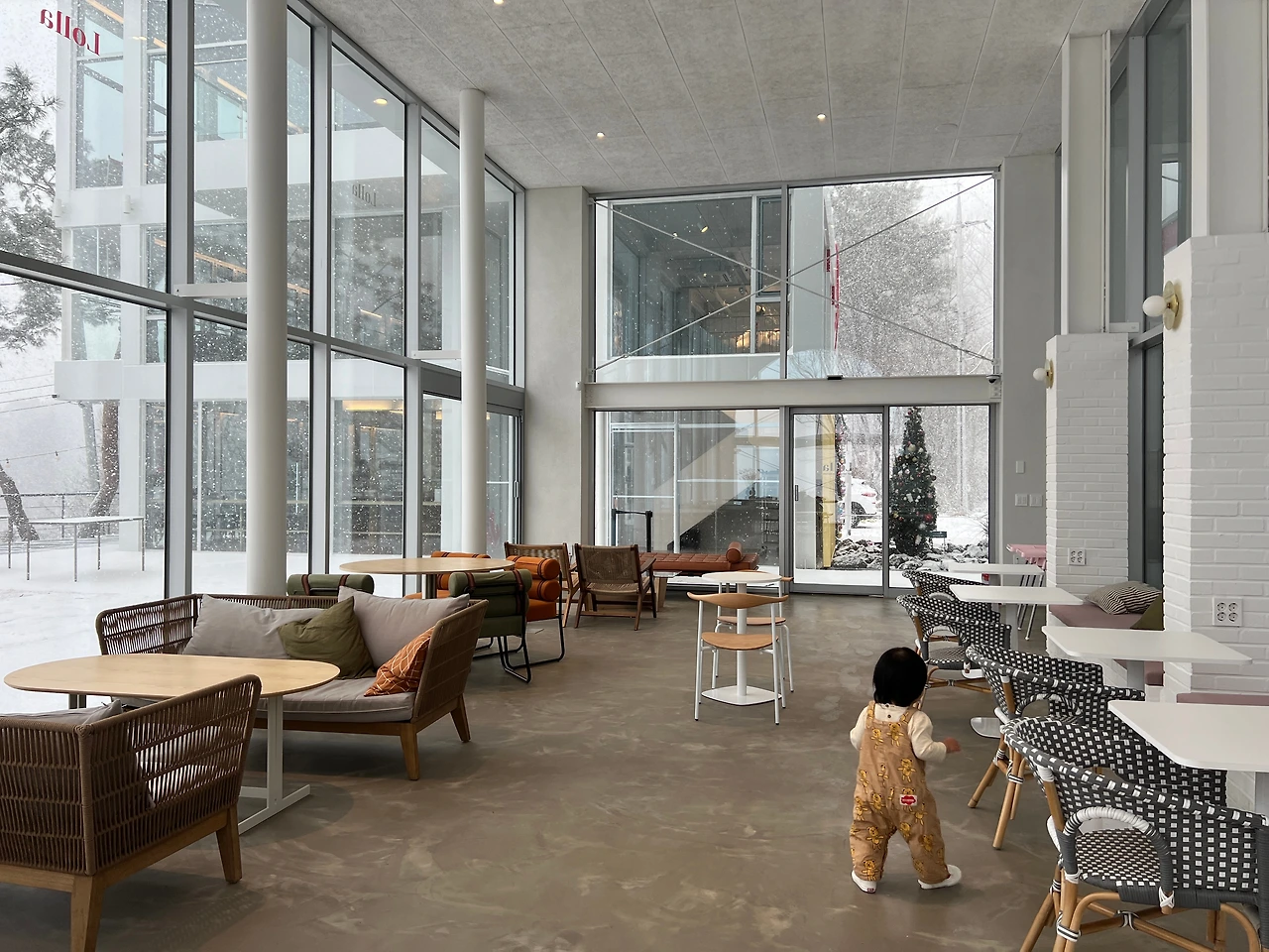 그리하여 신나게 아빠는, 아기를 데리고 눈을 구경시켜주고 난 뒤에 카페 안에 돌아왔다. 처음엔 함박눈에 신기한듯 웃음짓던 아이도 몇번 미끄러져 손에 냉기를 느끼고 아빠가 안아주지도 않으니 나중엔 겁을 먹어 울기 시작한다. 안으로 데리고 들어와 온풍기 바람을 쐬어주니 한동안은 그 앞에 두 손을 내밀고 바람을 쏘이다가, 이제는 자기 다리로 또 카페 공간을 쏘다니기 시작...하다가, 카페에서 전시해놓은 콜라병 높이의 작은 크리스마스 트리를 들고 뛰더니, 그걸 안고 그대로 넘어져서 얼굴에 흉터가 생겼다. 눈 아래와 턱, 두 군데나. 하여튼 아이를 볼 때는 잠시도 방심하면 안돼.