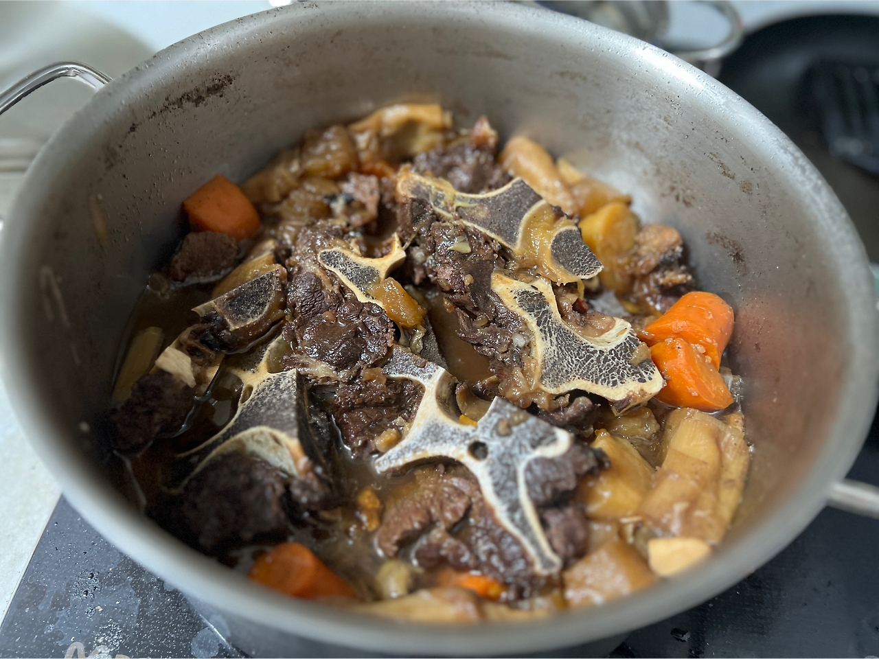 아무리 잡뼈여도 쇠고기는 쇠고기에 갈비는 갈비인지라 맛은 있다. 다섯시간 가까이 넉넉히 찌고 졸이니 마침내 뼈에서 고기가 부드럽게 발린다. 이제 끝!