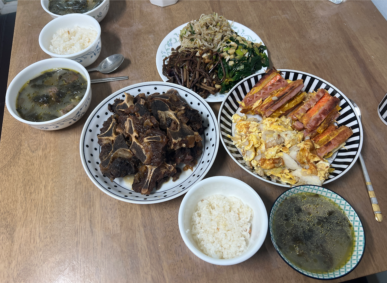 아무리 갈비뼈가 좀 수상한 놈이어도, 요리는 제대로 해야지. 핏물 빼고, 넉넉하게 야채 넣고, 마늘과 생강도 넉넉히 넣고, 진간장에 집간장 합쳐서 풍미까기 챙기며, 미역국과 같은 시간 졸였다. 찌다가 한번 보니 물이 적은 것 같아 한번 더 붓고 팔팔.